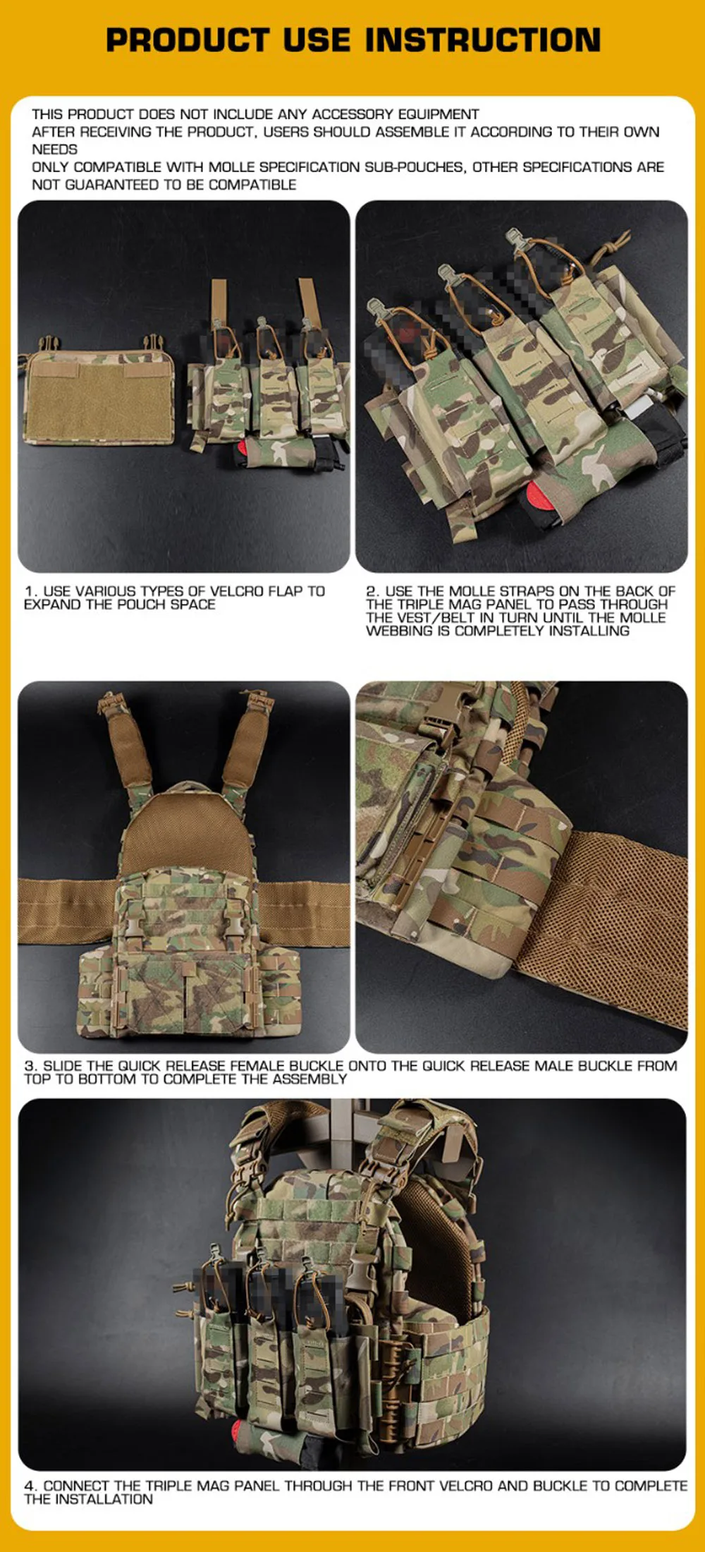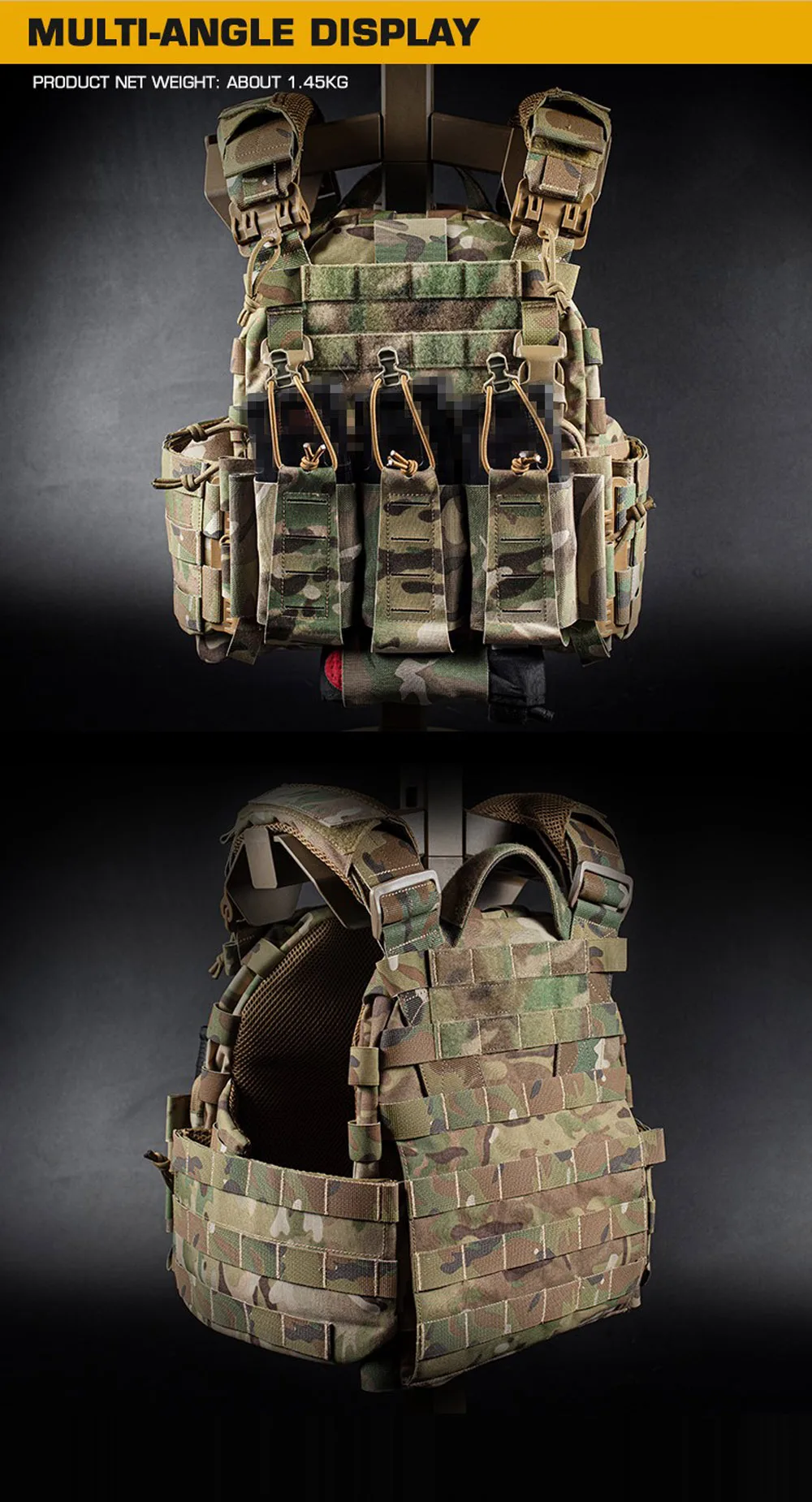 Chaleco táctico ARC, portador de placa con hebilla de liberación rápida, bolsa para revistas 5,56, Panel frontal MOLLE, chaleco de caza Militar Airsoft