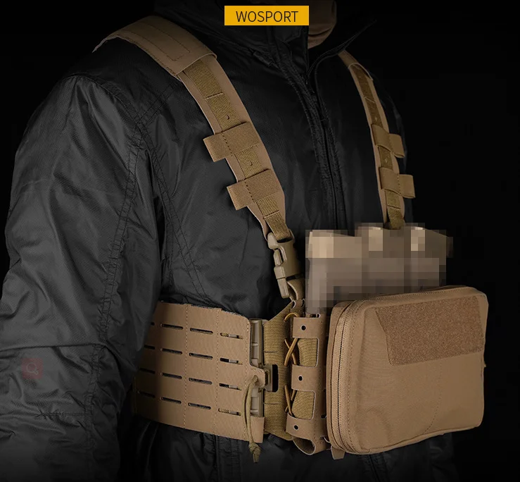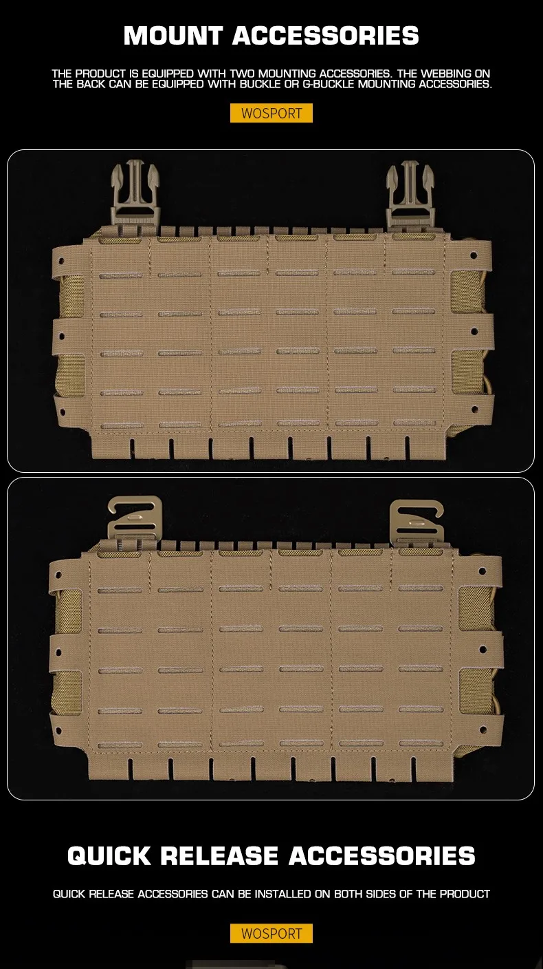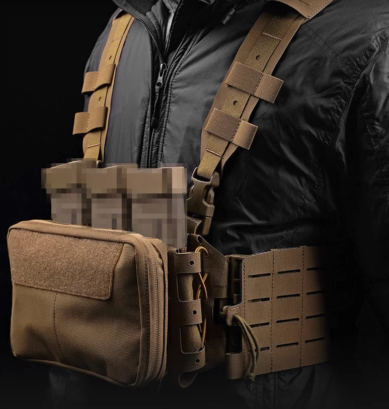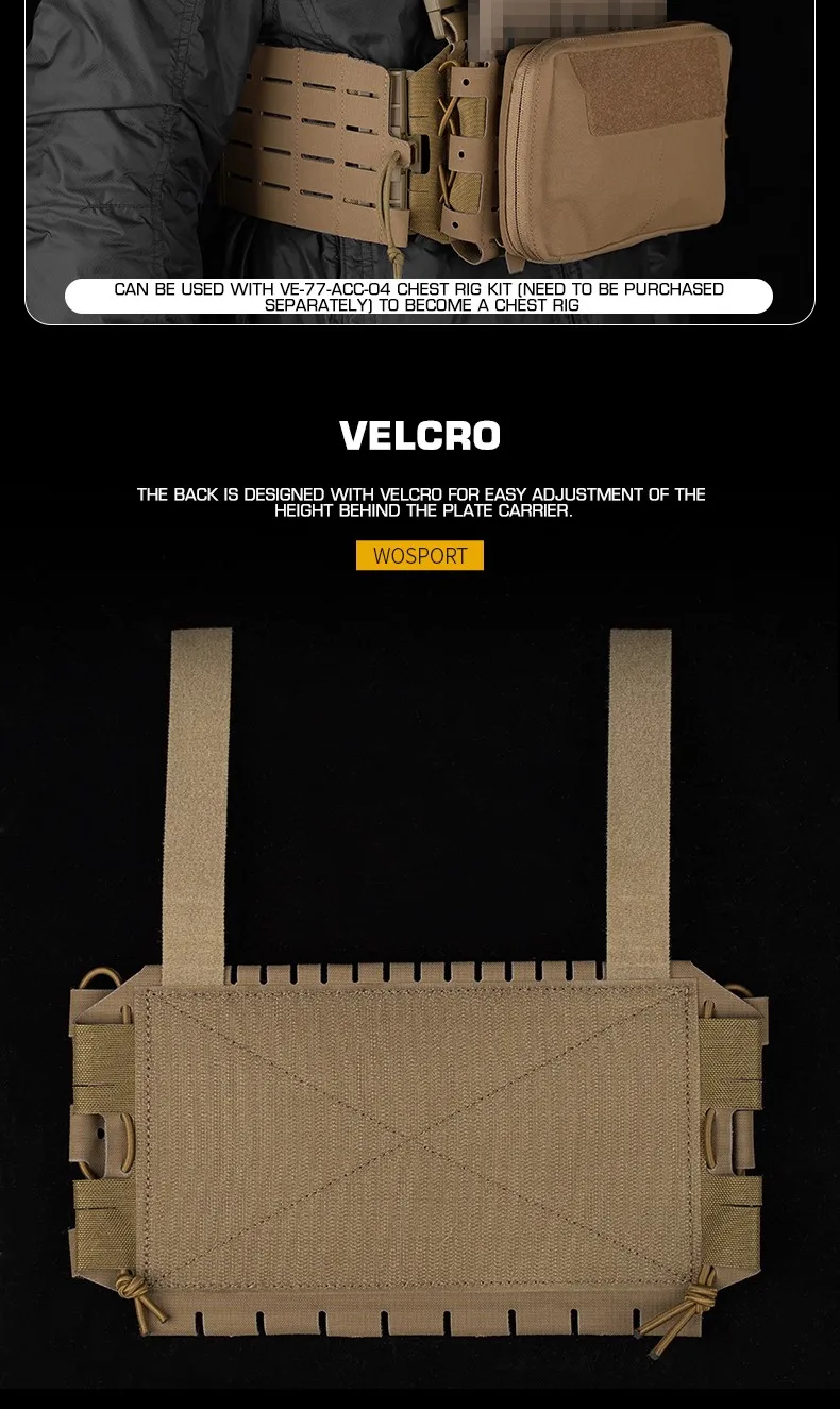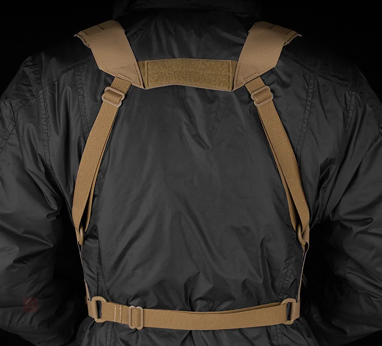Este kit convierte la mayoría de los paneles montados en el chaleco táctico (que deben poder instalarse y retirarse rápidamente) en perchas de pecho
