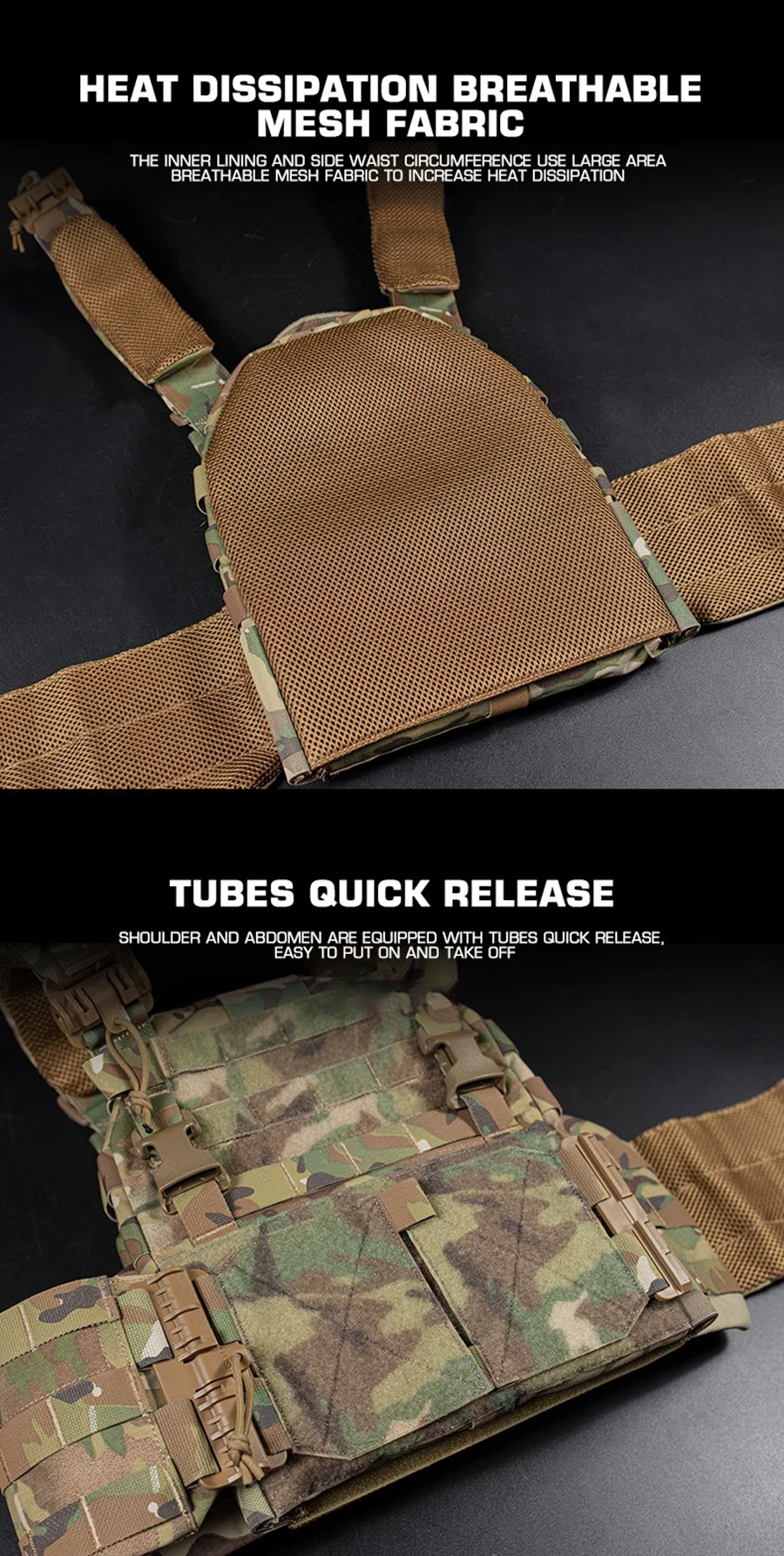 2Los chalecos Airsoft están completamente acolchados con malla transpirable de gran superficie, que es cómoda y te mantiene fresco al permitir la circulación del aire.