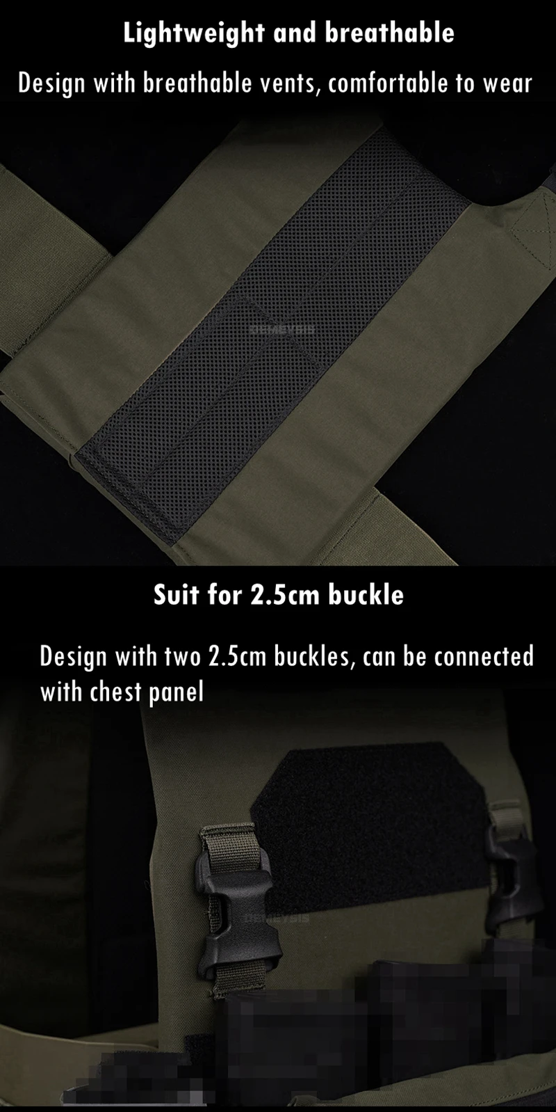●Traje para hebilla de 2,5 cm.Diseño con dos hebillas de 2,5 cm, se puede conectar con el panel del pecho.