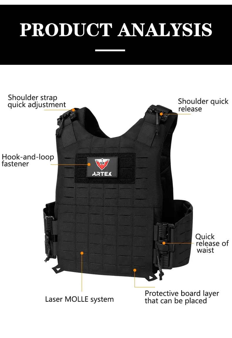 El chaleco táctico Artex presenta un diseño de desmontaje rápido, lo que permite una implementación rápida y un fácil almacenamiento.