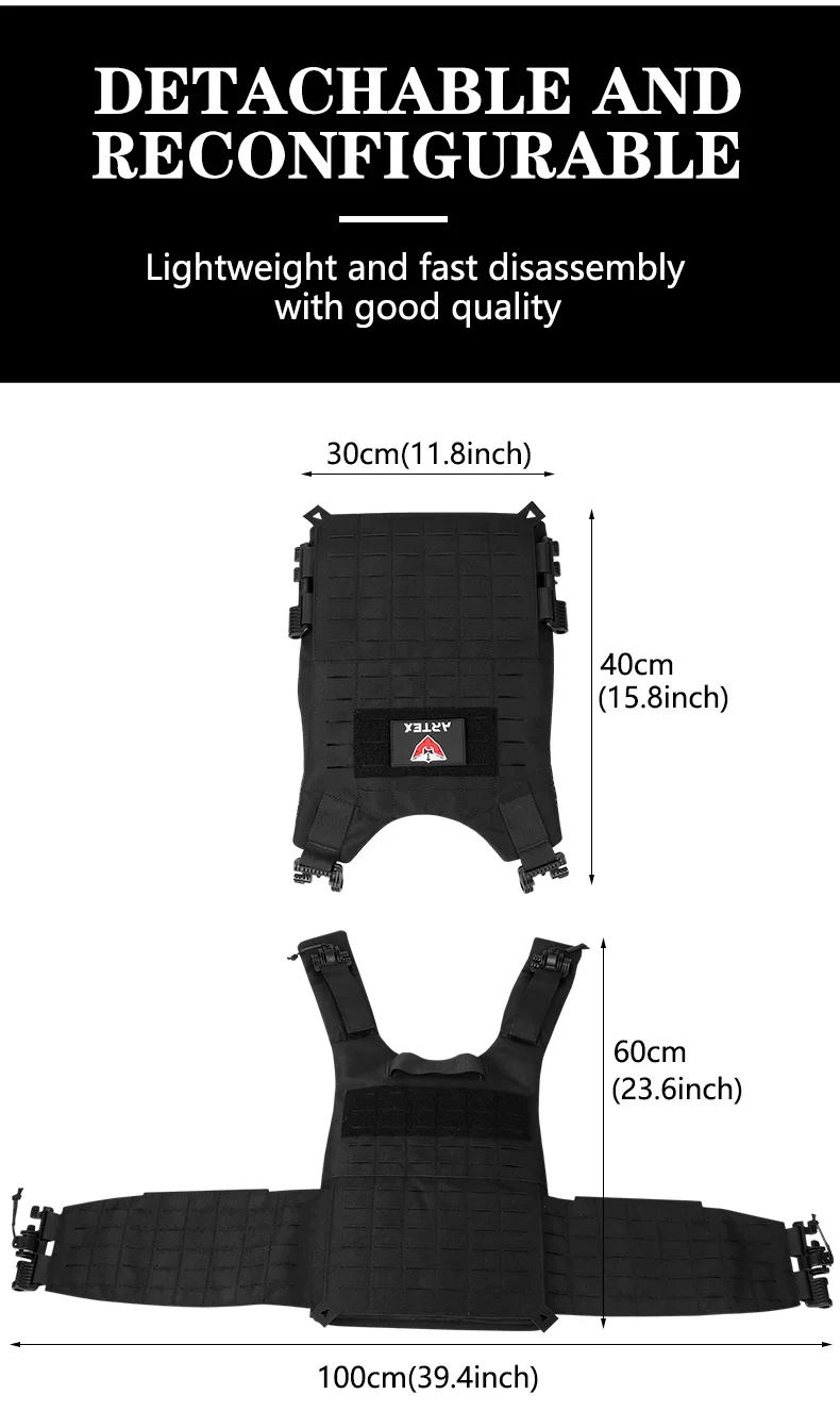 Este chaleco táctico es desmontable y ampliable, ofreciendo versatilidad y adaptabilidad a diversos escenarios de entrenamiento.