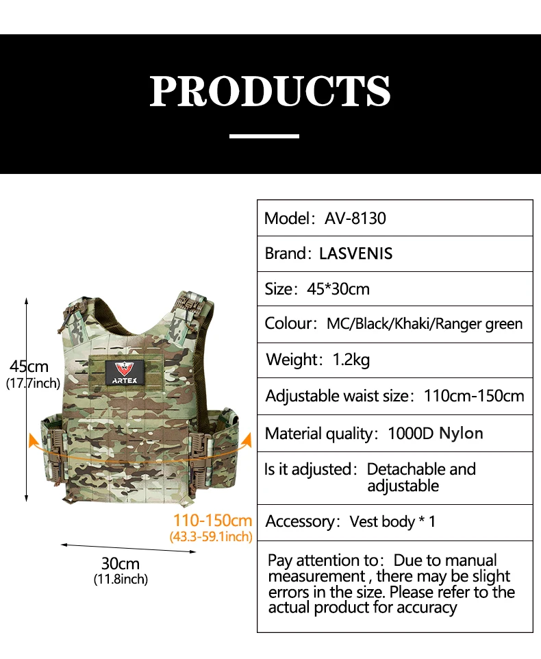 El chaleco es resistente al desgaste, diseñado para soportar los rigores del entrenamiento táctico y las operaciones.