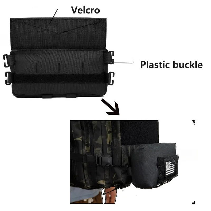 Compatible con la mayoría de los aparejos de pecho y soportes de placas que tienen un cierre de gancho y bucle en la parte delantera. Por ejemplo: JPC, CPC, LBT, D3CR, MK3, MK4 etc.