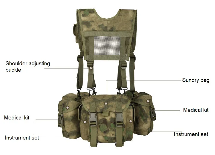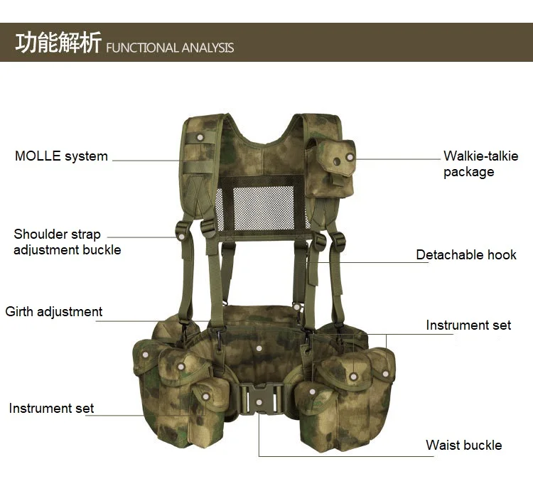 Chaleco táctico Camo 1000D Nylon aparejo de pecho al aire libre cinturón de trabajo Molle caza combate cinturón acolchado con bolsa