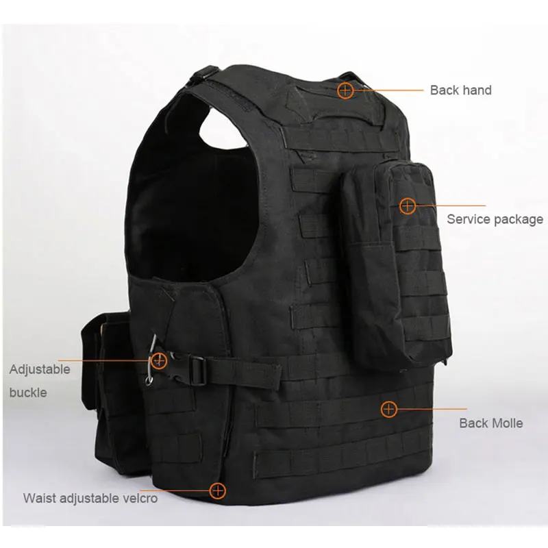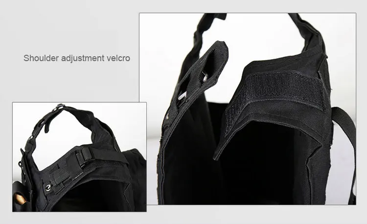 -La parte lateral del hombro y la cintura adopta un diseño de cinta mágica y hebilla que le permite usar y quitarse este chaleco táctico de manera rápida y conveniente.