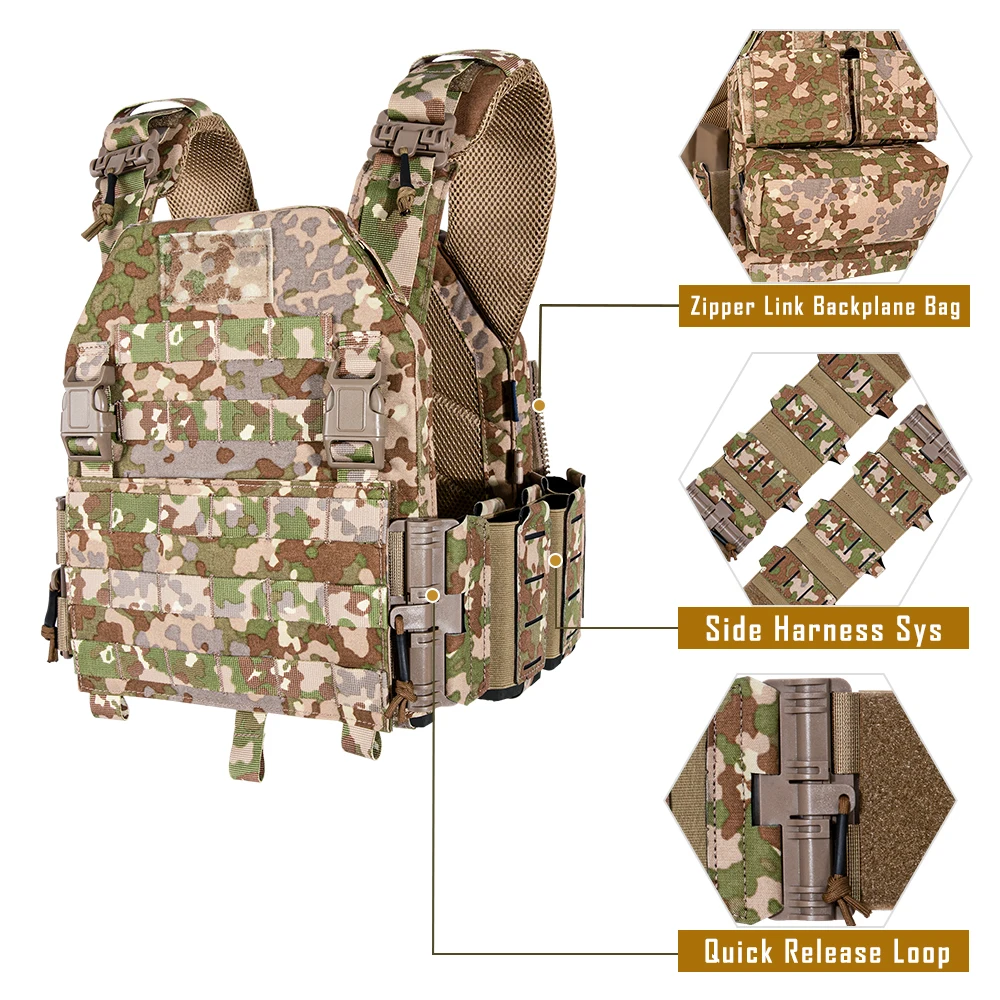 Chaleco táctico de camuflaje Durban para todo terreno, airsoft, liberación rápida, portador de placa Molle, hebilla, placa de asalto, chaleco de caza y paintball