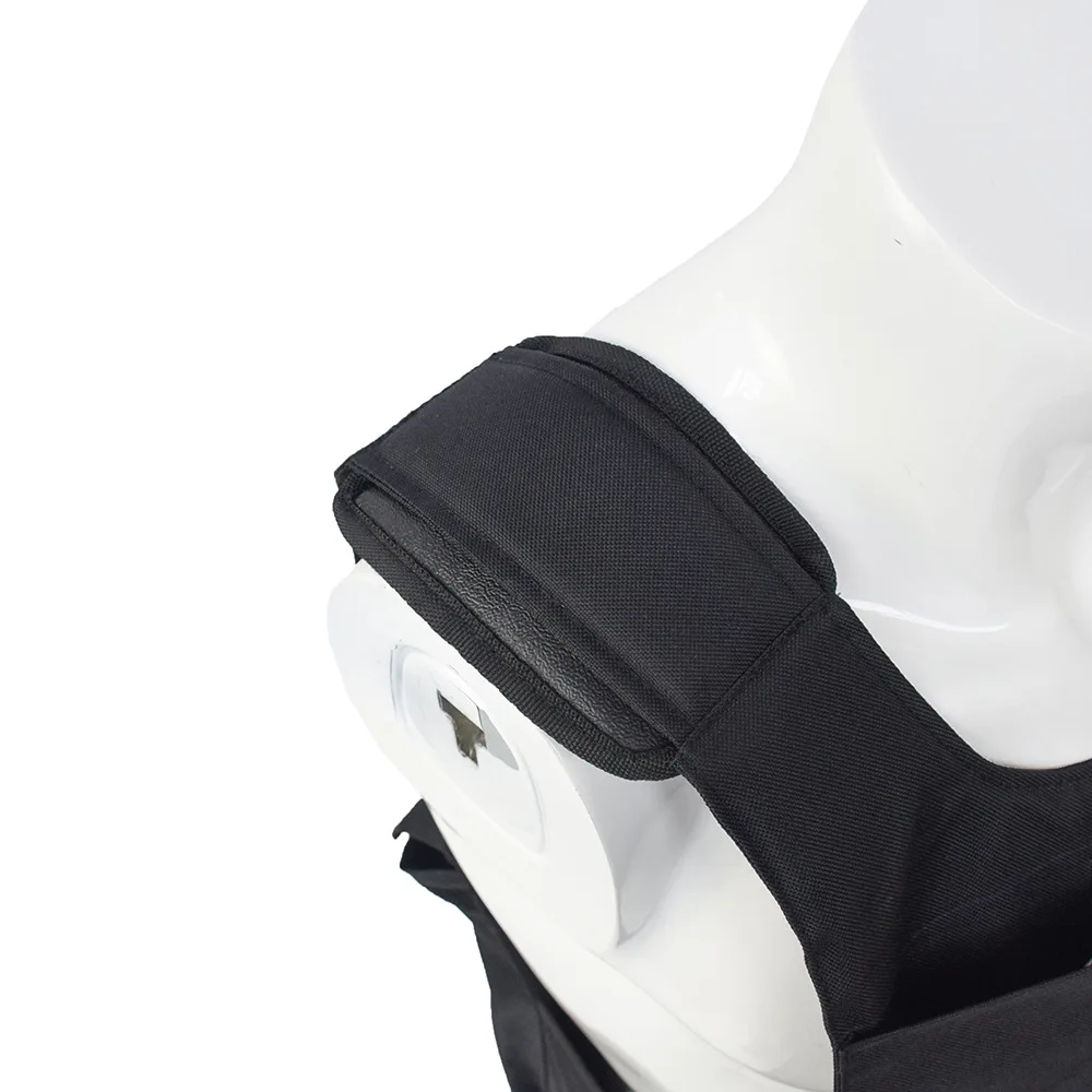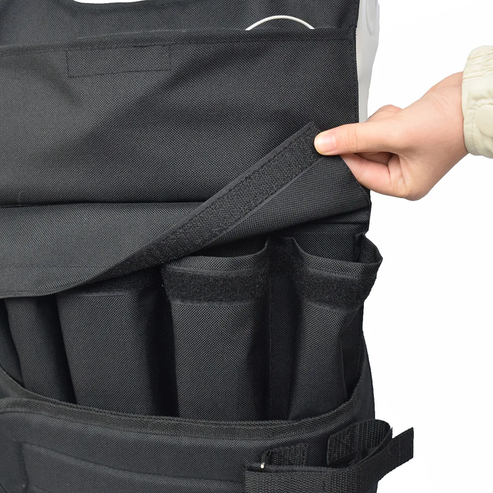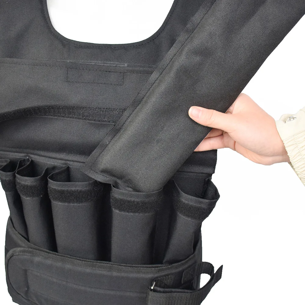 Hecho de tela oxford espesante de alta densidad, duradera al usar. Diseñado con un hombro ensanchable, cómodo de llevar. Forro interior de esponja comprimida altamente flexible, para protección y absorción de impactos. Con 10 piezas de bolsas para cargar arena o placa de acero. Es Un equipo ideal para fitness, perder peso y hacer ejercicio ágil.