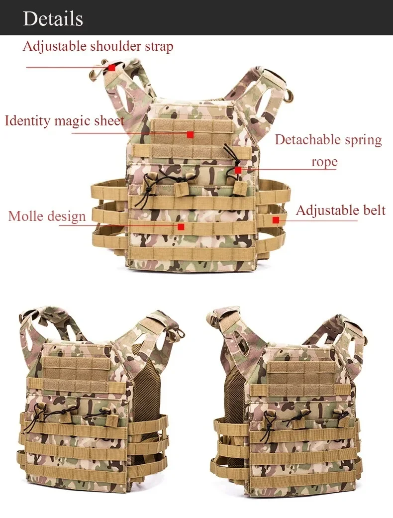 Armadura corporal de tela Oxford 600D, chaleco de caza Molle ajustable, chaleco portador de placa Molle ligero, equipo de jungla repelente al agua