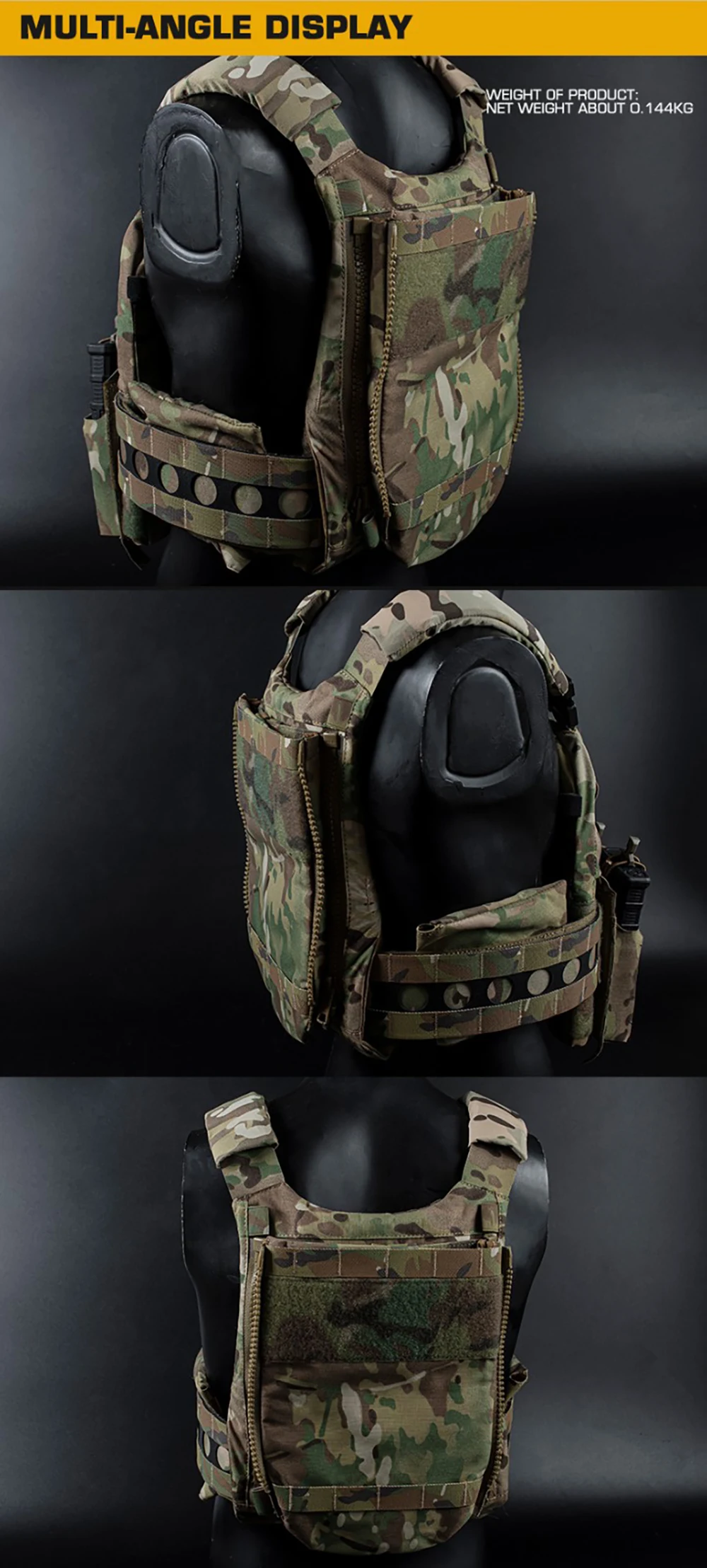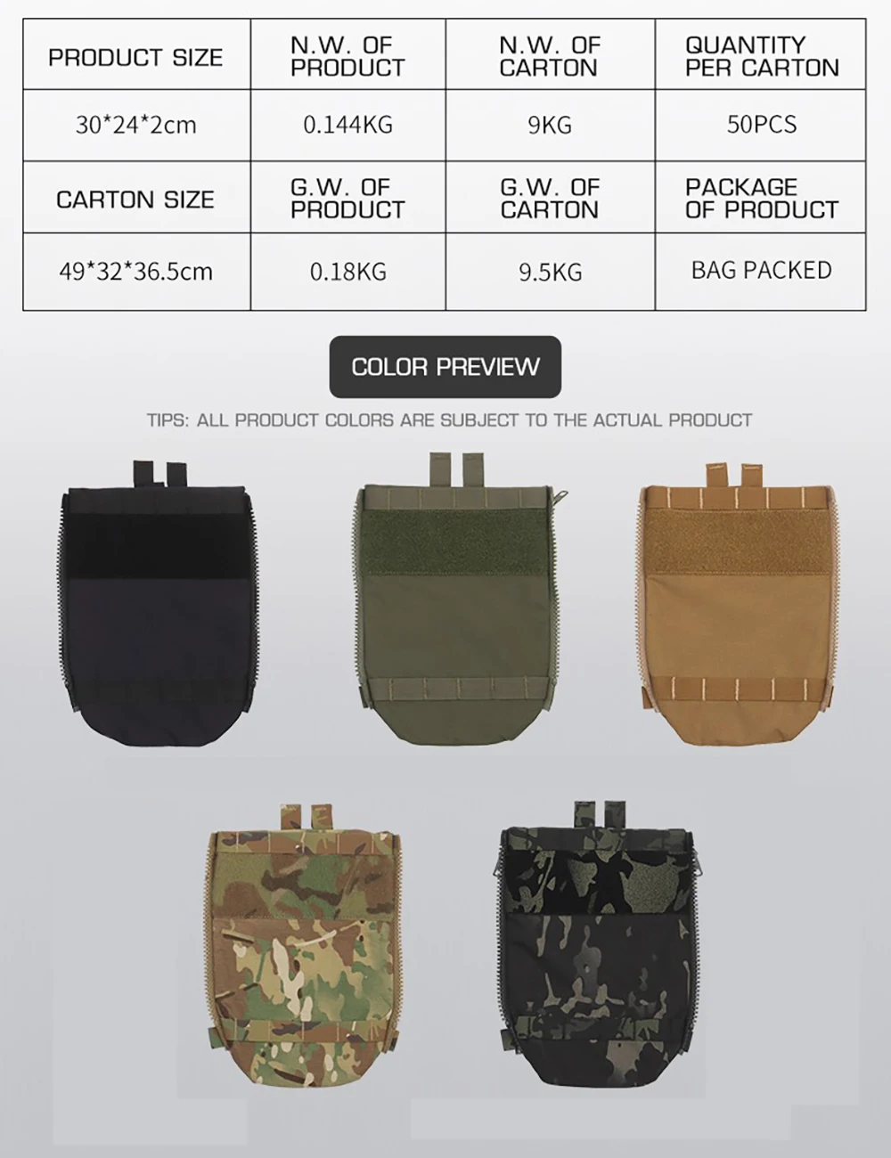 Usando cremallera YKK de grado militar, la apertura y el cierre son suaves y no se atascan.
