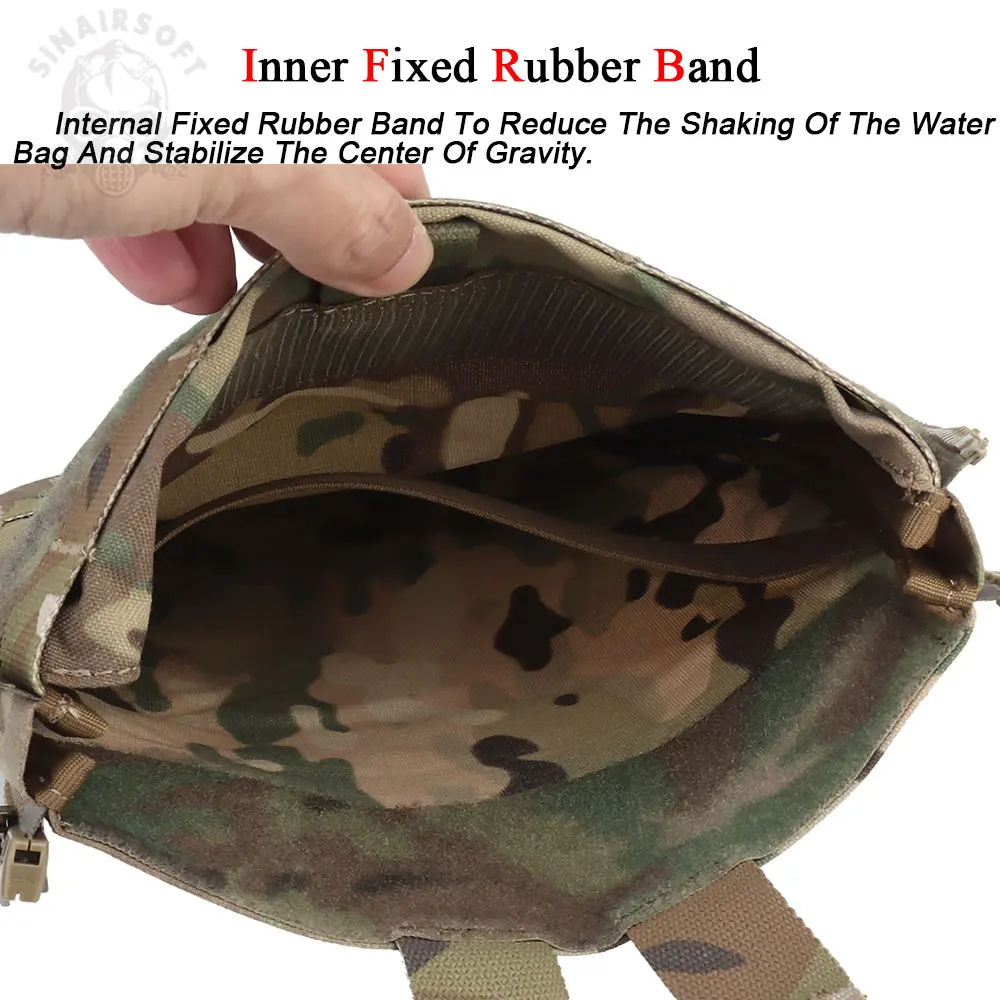 Banda de goma fija interna para reducir las sacudidas de la bolsa de agua y estabilizar el centro de gravedad.