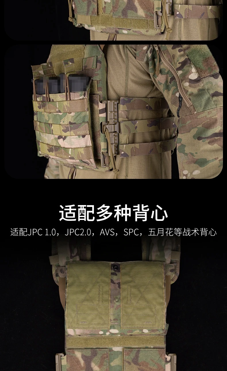 Permite actualizar la mayoría de los chalecos tácticos a una estructura de liberación rápida, permitiendo retirar rápidamente el chaleco en situaciones de emergencia, mejorando la movilidad táctica.Al mismo tiempo, se combina con un cinturón MOLLE estándar, con tamaño ajustable, adecuado para múltiples chalecos tácticos como JPC 1.0/2.0, AVS, SPC, Mayflower, etc.