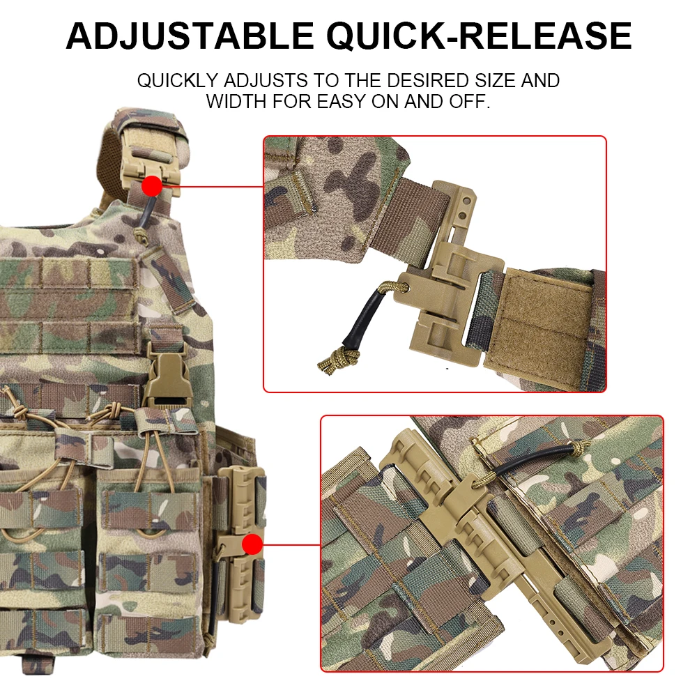 ① El portador de la placa táctica viene con un juego de hebillas de liberación rápida para que pueda cambiar el portador de la placa KZ al sistema de liberación rápida