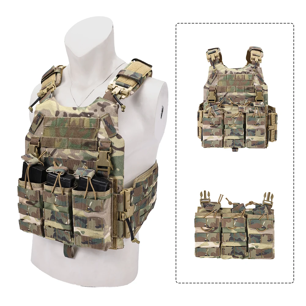 Nuevo chaleco táctico combate Molle placa portador 3 bolsas 762 5,56 Airsoft caza cuerpo armadura equipo de protección Nylon