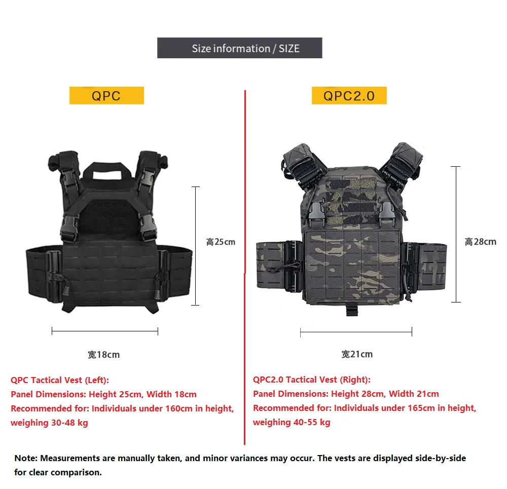Tamaño del panel del chaleco QPC2.0: Alto 28 cm x Ancho 21 cm. Recomendado para: Individuales de menos de 165 cm de altura y 40-55 kg de peso.