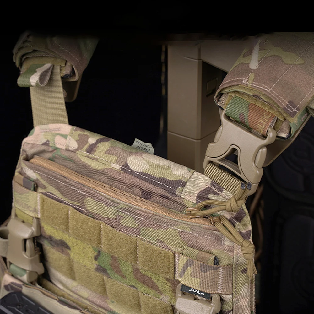 ① Añade la cremallera a la bolsa de administración integrada del portador de placa Crye AVS.