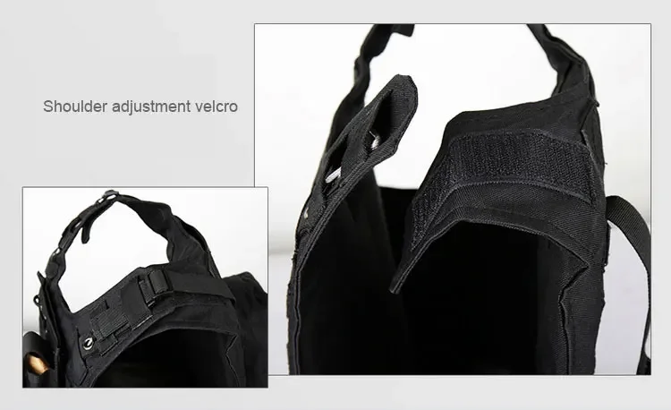 - La parte lateral del hombro y la cintura adopta un diseño de cinta mágica y hebilla que le permite usar y quitar este chaleco táctico de forma rápida y cómoda.