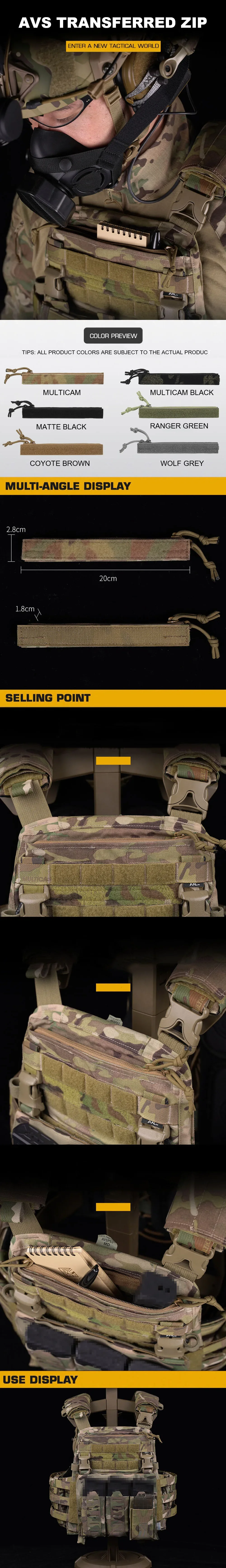 Chaleco táctico con doble cremallera, bolsa de inserción para chaleco Crye AVS, bolsillo de almacenamiento, cubierta con cremallera, chaleco de caza Airsoft, accesorios YKK con cremallera