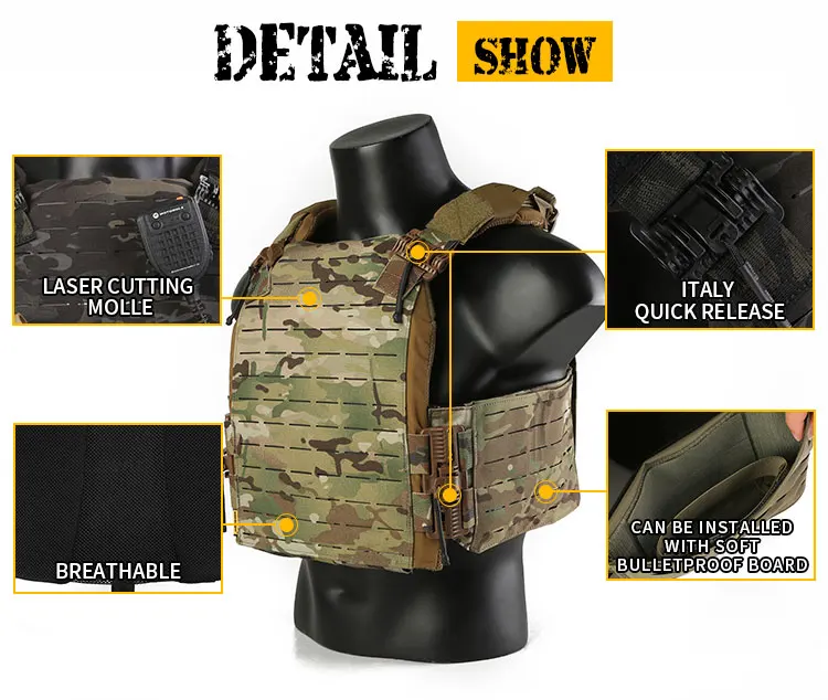 1. Los paneles delanteros y traseros son de diseño MOLLE completamente cortado con láser, persiguiendo el peso ligero definitivo.