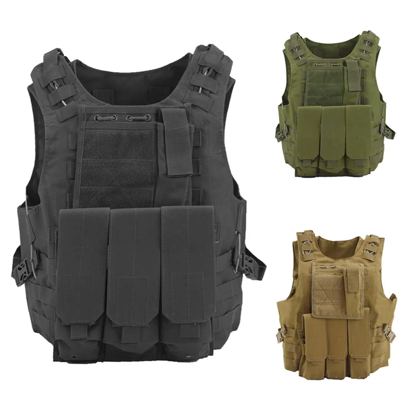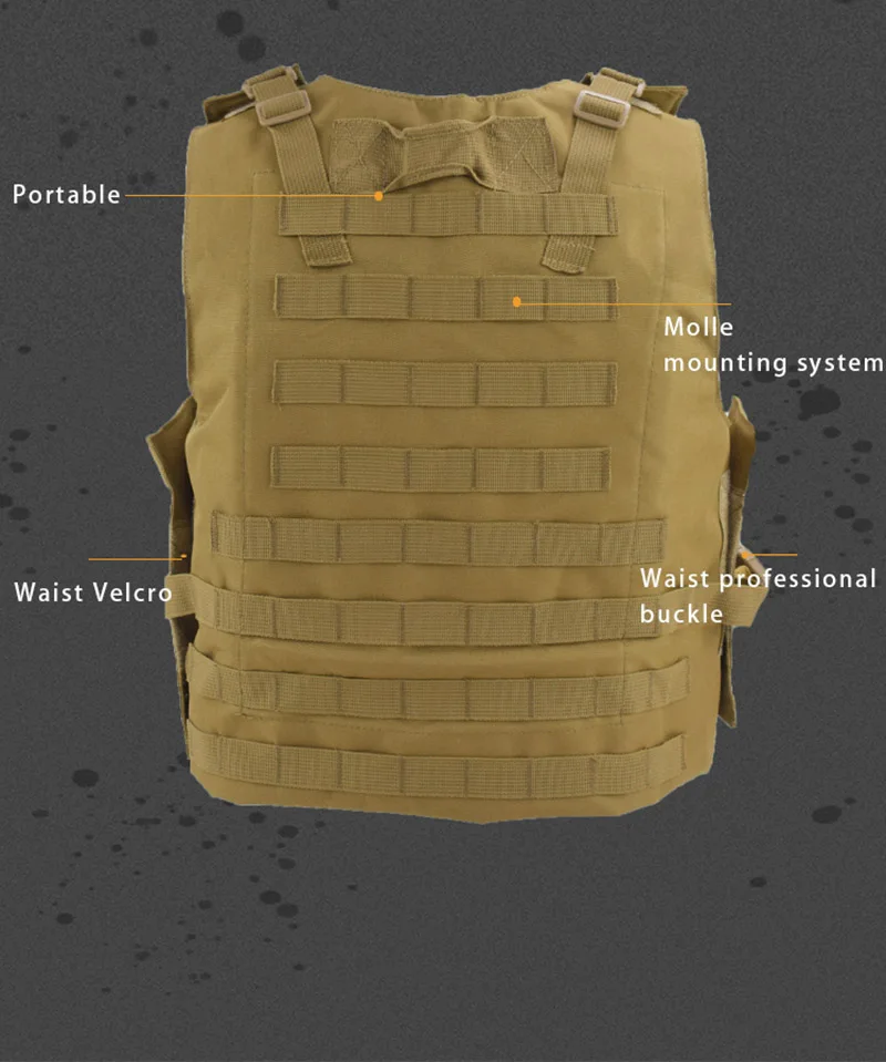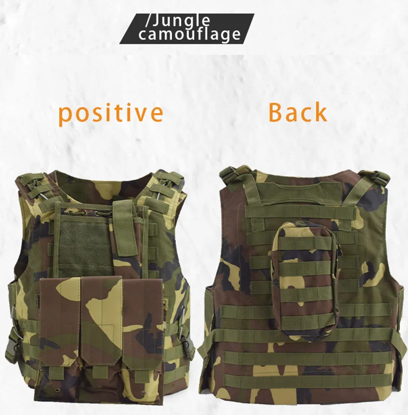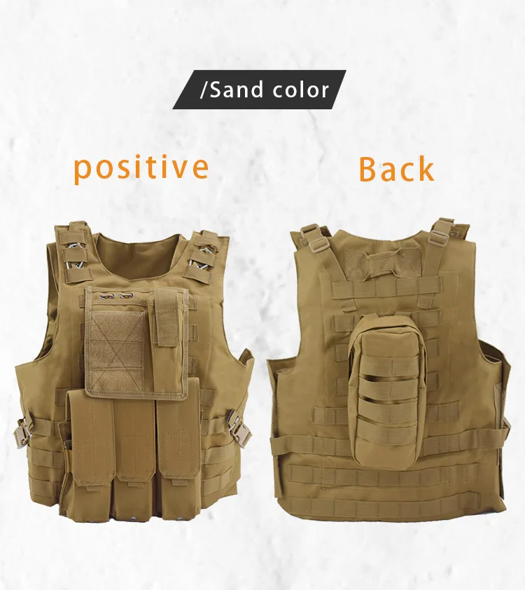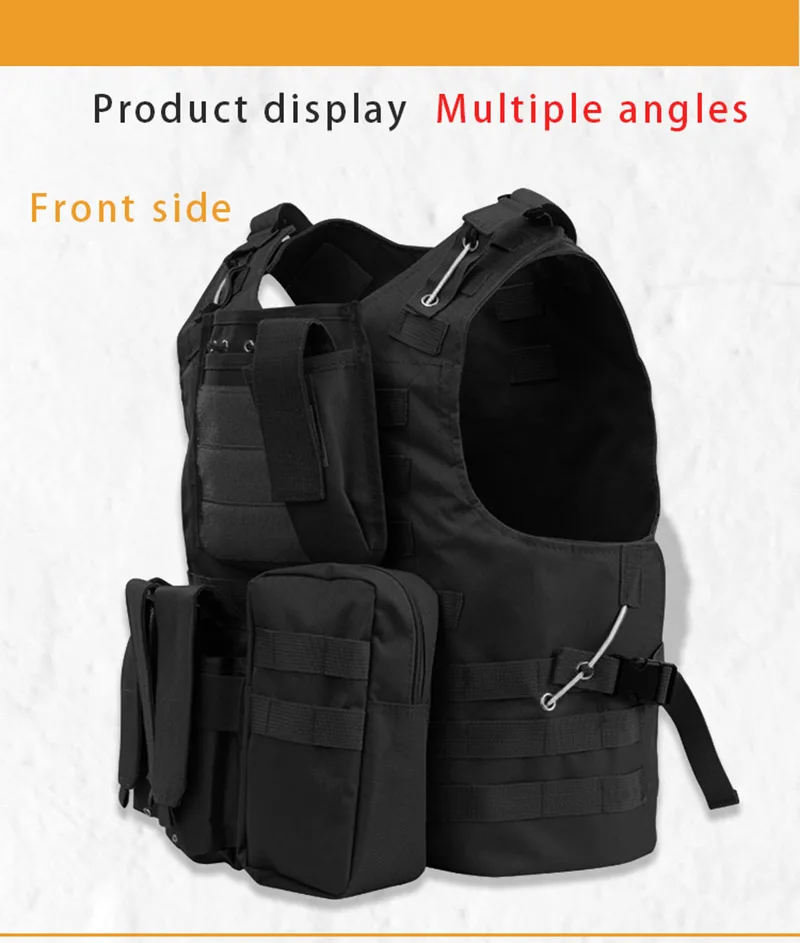 Características principales:-Material Oxford 600D de alta calidad, mayor resistencia a la tracción y al desgaste, cómodo y duradero.-La parte delantera y trasera adoptan el diseño Molle, puede llevar fácilmente otros dispositivos pequeños.-La parte lateral del hombro y la cintura adopta un diseño de cinta y hebilla que le permite usar y quitarse este chaleco táctico de manera rápida y conveniente.-Con 3 bolsas de accesorios desmontables para satisfacer diferentes necesidades de almacenamiento.-Una de las bolsas de accesorios adopta un diseño de cinta grande, donde puede pegar una insignia como su identificación.