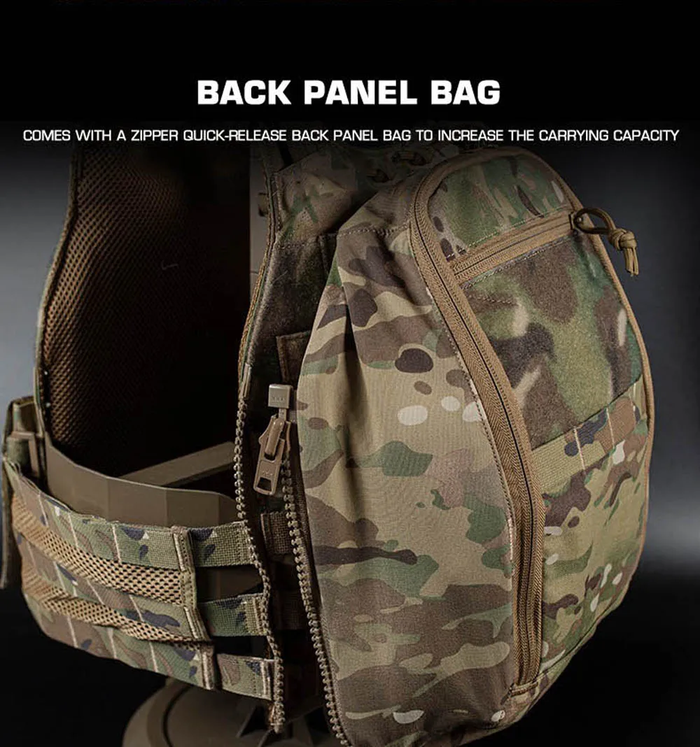 Chaleco táctico escarabajo con bolsa de panel trasero, chaleco Airsoft multifuncional para caza al aire libre, equipo de protección para portador de placa