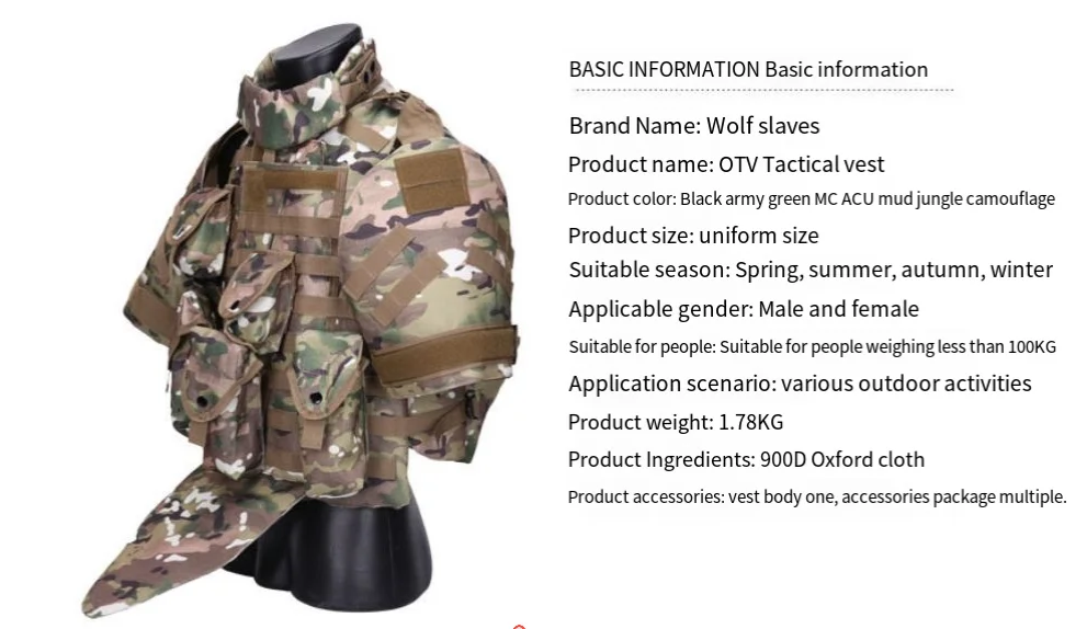 Chaleco táctico extendido OTV Chaleco protector de combate de campo