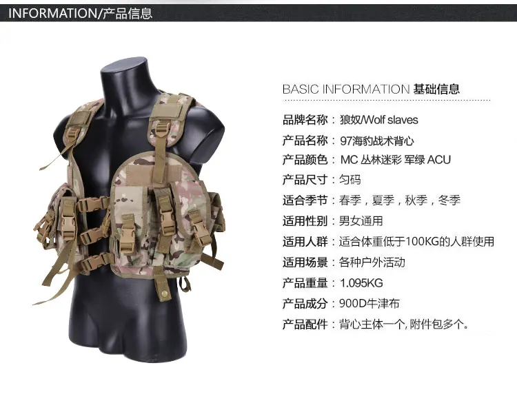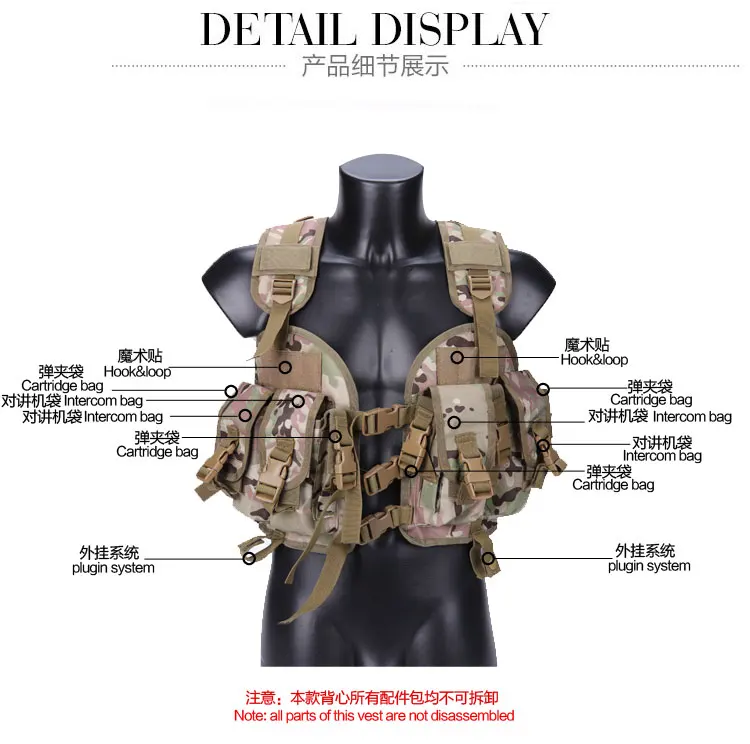 4 bolsas grandes para revistas y 5 bolsas para revistas de linterna o pistola en la parte delantera.