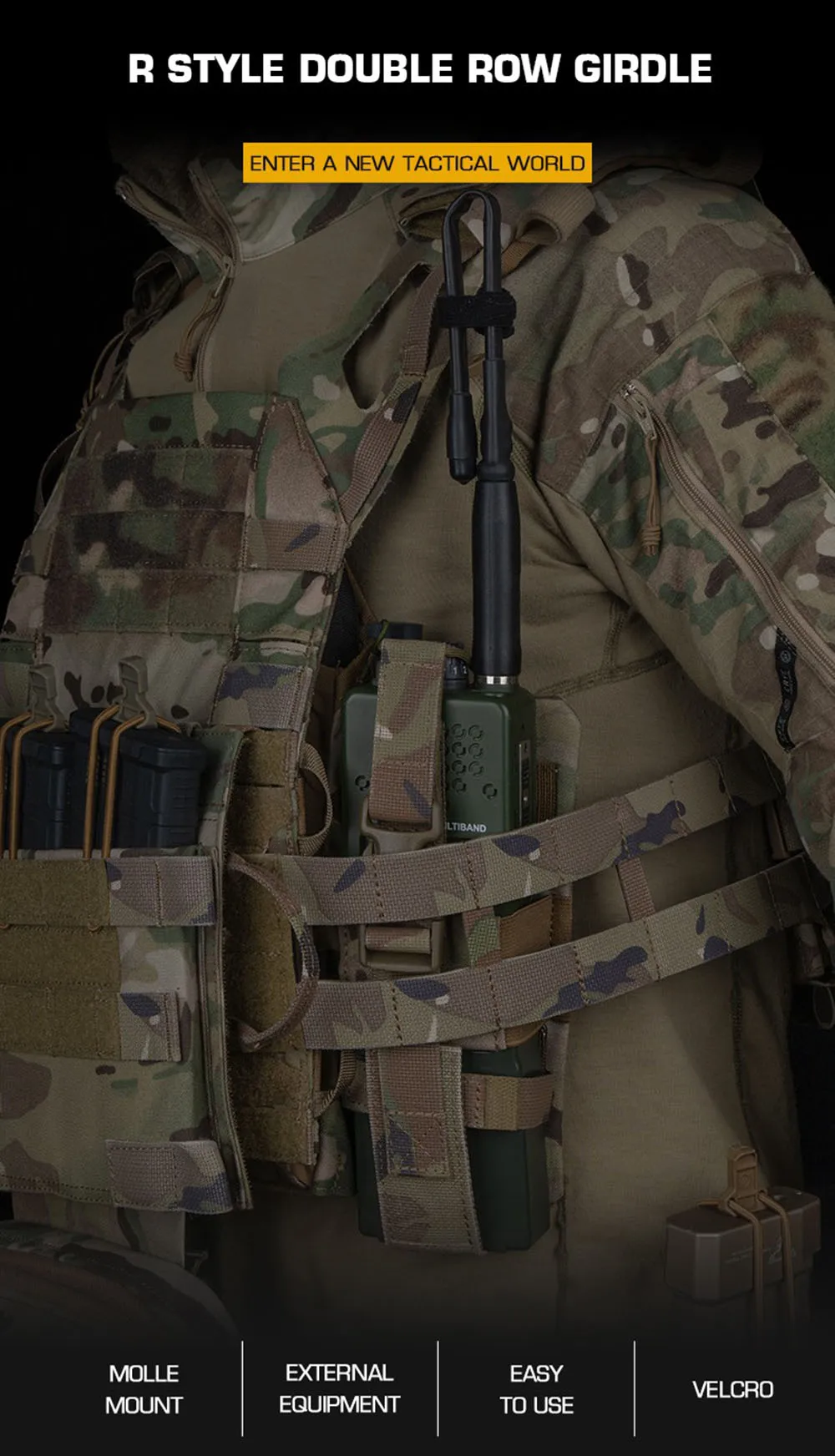 Chaleco táctico con faja de doble fila serie R, fajín esquelético de 2 bandas, sello de cintura Molle para JPC, AVS y SPC