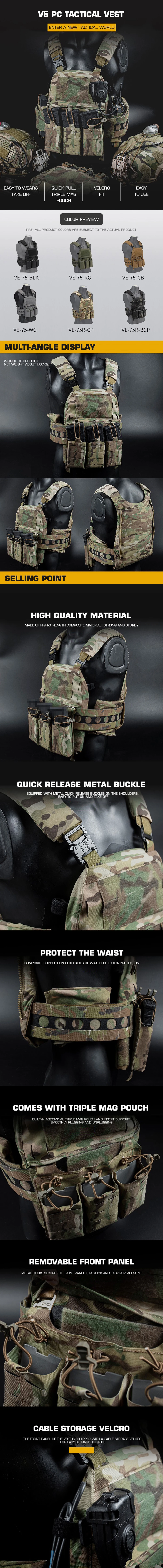 Chaleco Táctico para Caza Militar Molle, Equipo de Armadura Corporal para Tiro de Airsoft, V5