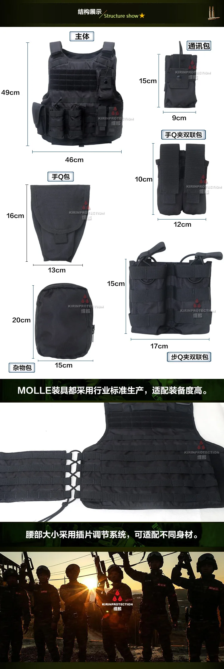 Este chaleco táctico está diseñado para el combate real de acuerdo con los estándares de pujas GA. El tanque se puede instalar con 0,3 metros cuadrados de área de protección contra el tanque D.El chaleco está hecho de tela 900D impermeable e ignífuga. Los accesorios están hechos de hebilla de cuatro cerraduras UTX (112) de los Estados Unidos con alta firmeza. La cremallera del producto está hecha de la marca YKK de Japón con buena durabilidad.Otros accesorios de cinta, cuerda de tendón, Velcro, etc. están hechos de materiales de alta calidad, mano de obra fina, esperando su identificación.