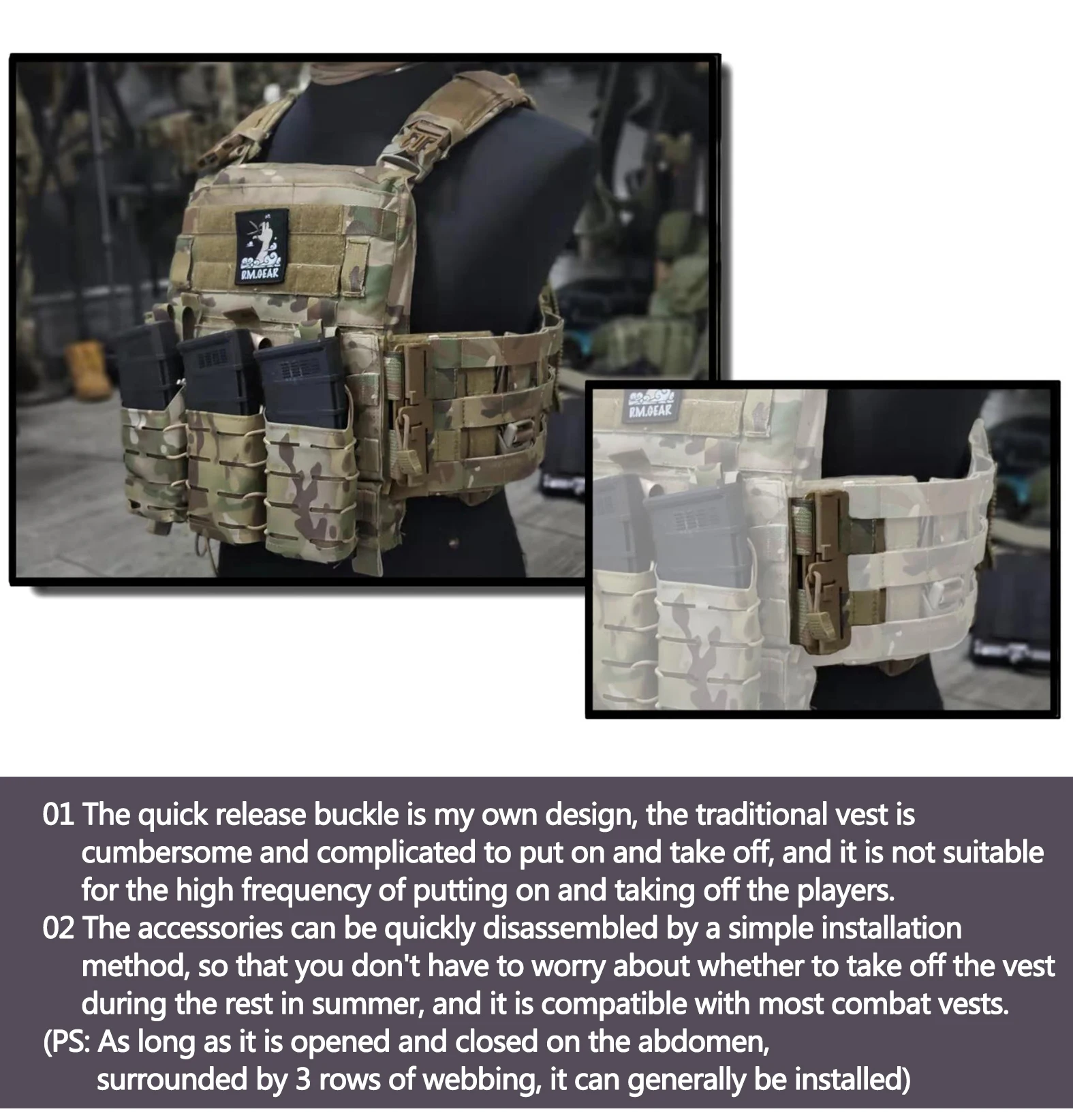 Título: DMGear Diseño Original Chaleco táctico Cummerbund Plate Carrier Holder Molle Hebilla de liberación rápida Jpc Cpc 6094 Gear Equipment Accesorio Versión de actualización