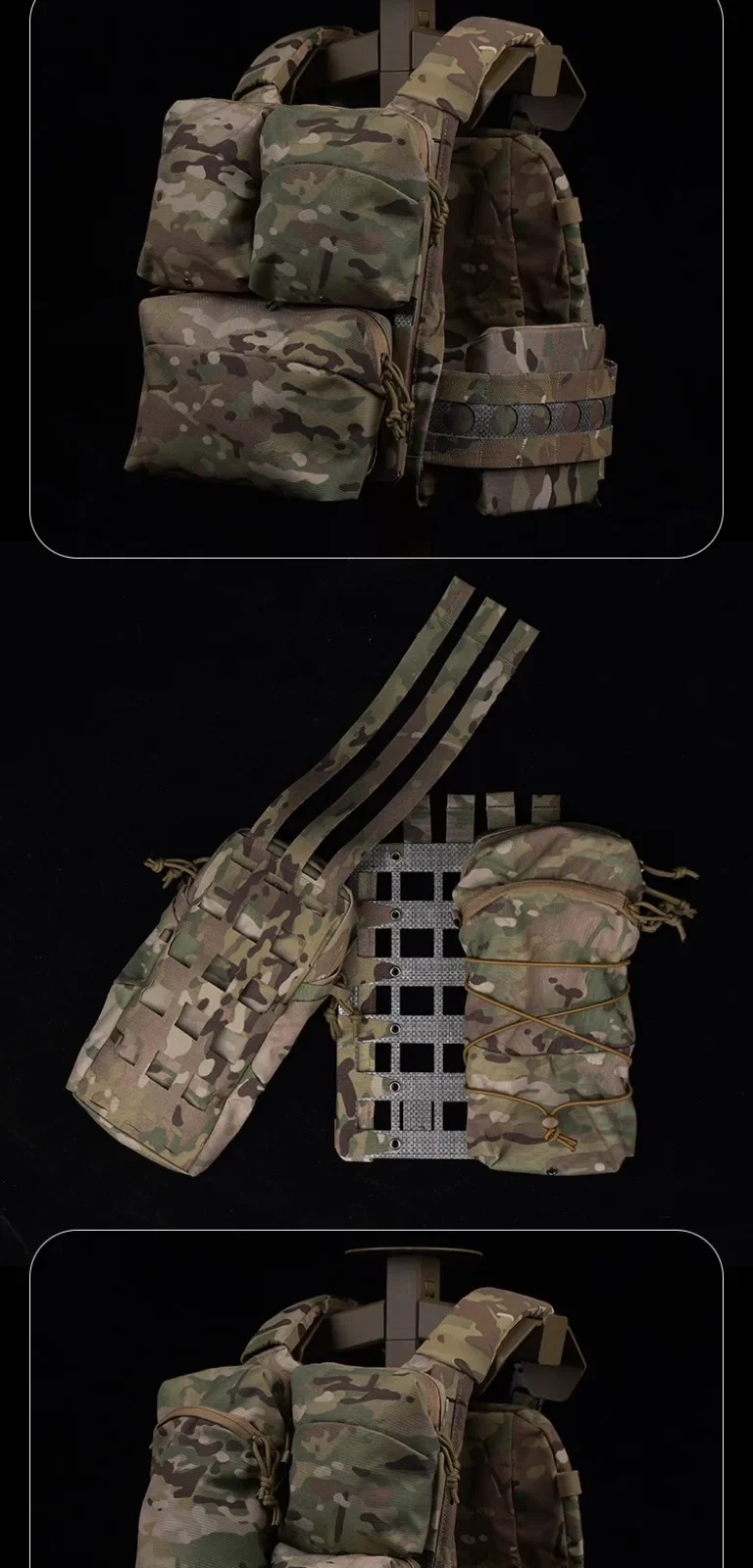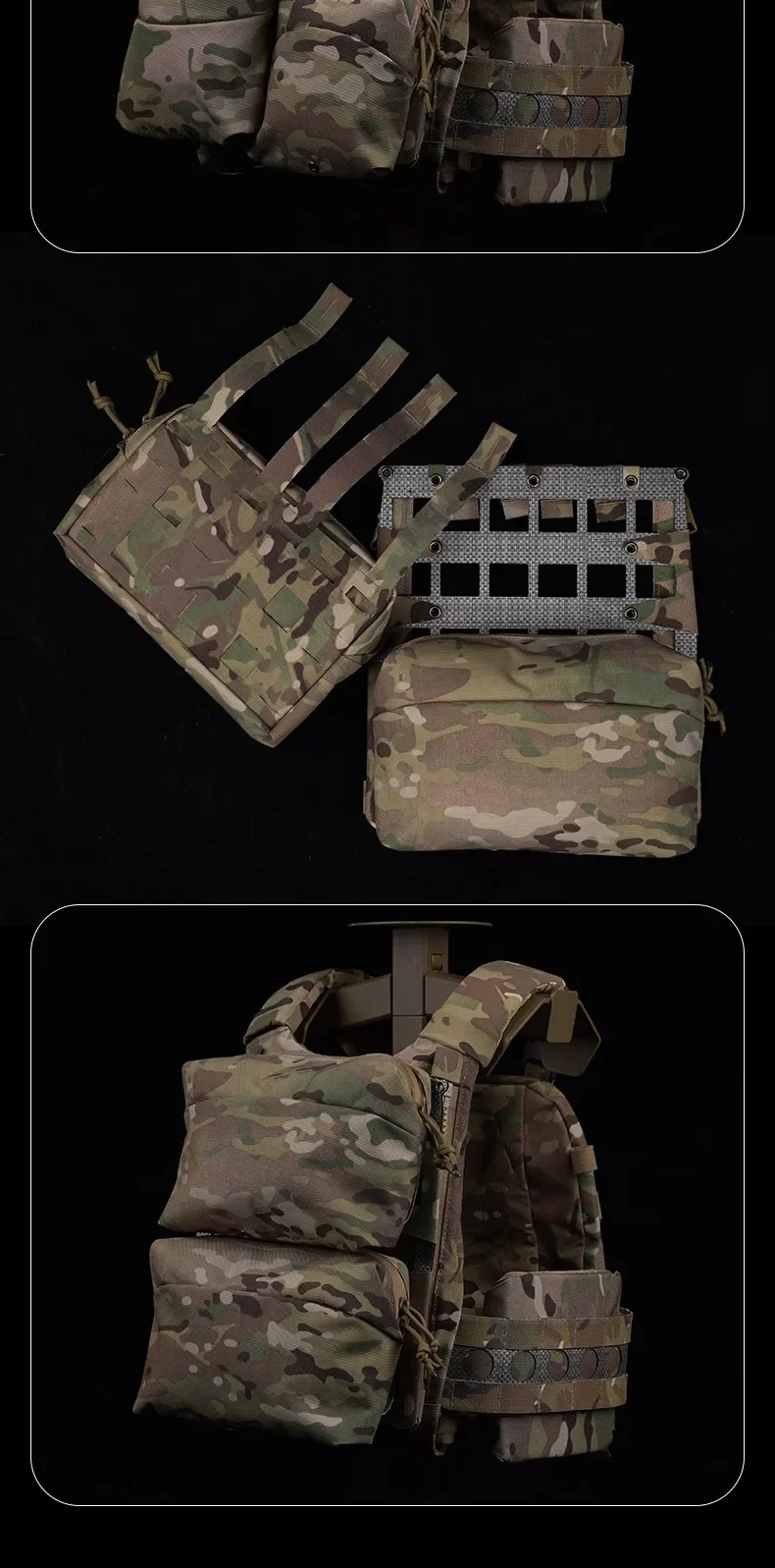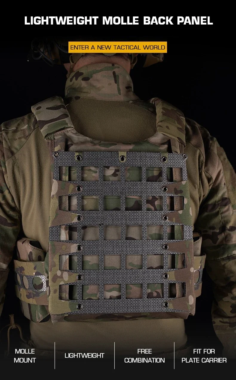 Descripción del producto: Nombre del producto: panel trasero ligero Molle Material: Pana Color del artículo: BCP/BLK/CP/CB/WG/RG Escenarios aplicables: actividades en equipo, juegos tácticos, accesorios de películas