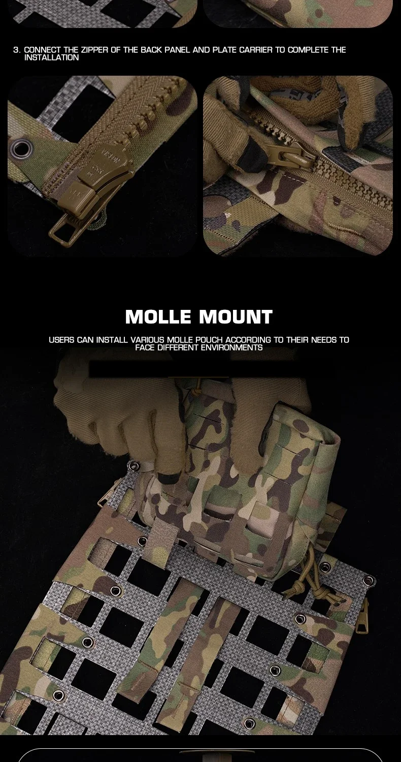 Chaleco táctico de hierro MOLLE, Panel trasero ligero FCPC V5, portador de placa de caza, se extiende el soporte, accesorios de Panel trasero con cremallera