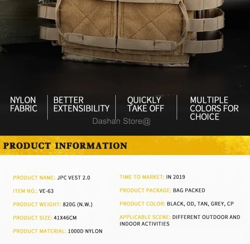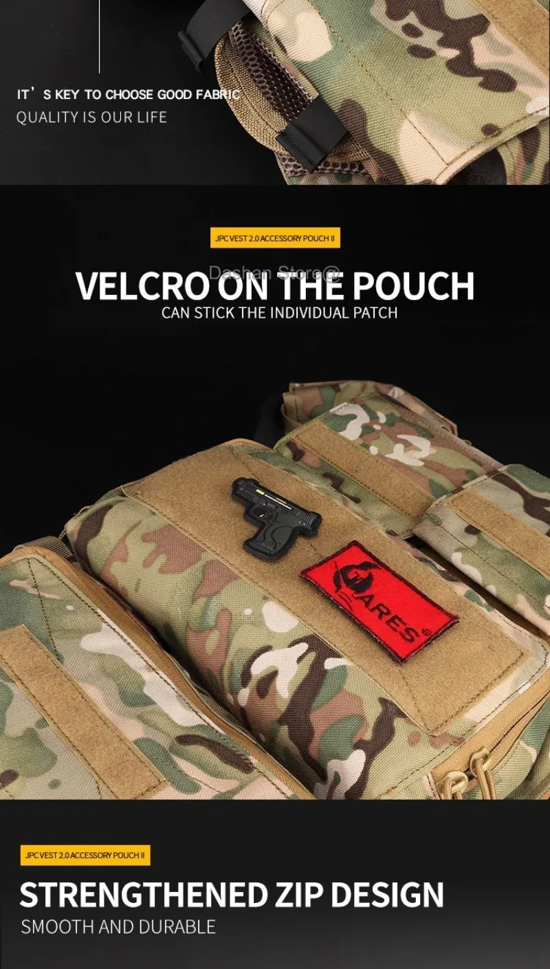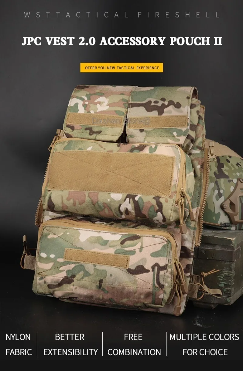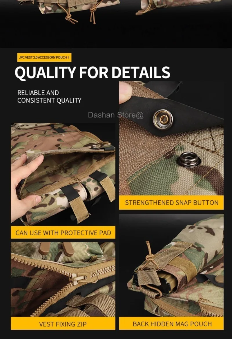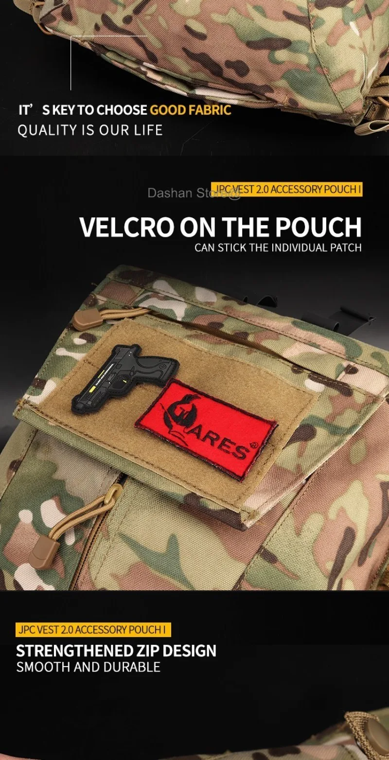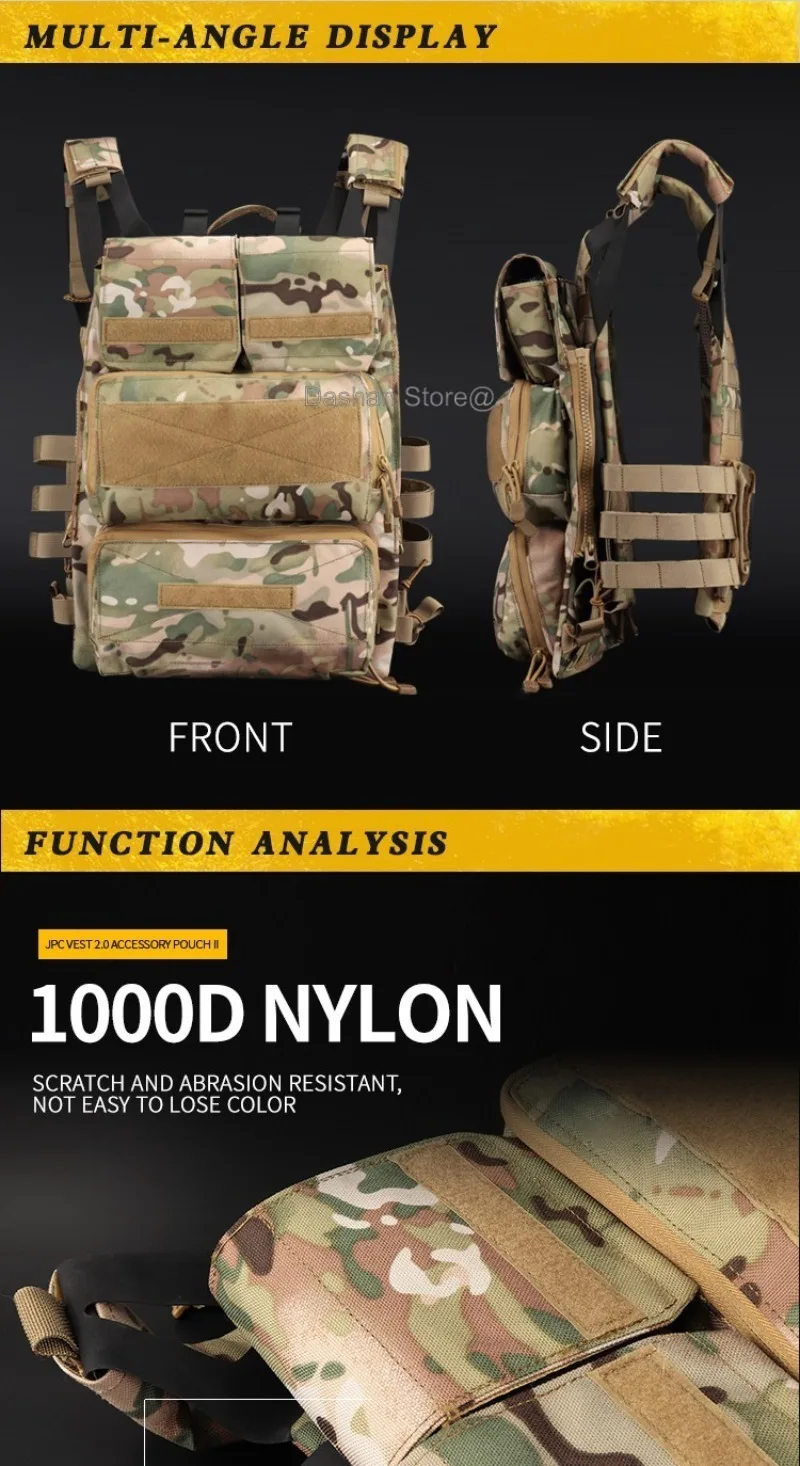 Material elástico de alto rendimiento que permite placas de paneles de marca de velcro de diferentes espesores en la parte frontal del soporte que permite MOLLE o solapa frontal de bolsa magnética desmontable