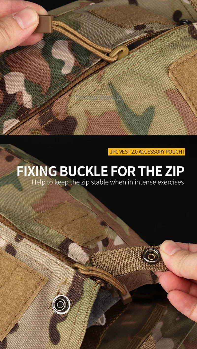 Un bolsillo incorporado para herramientas de hidratación/preparación y dos bolsillos laterales para cargadores de acceso.