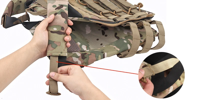 Se conecta a la placa frontal del chaleco para proporcionar correas MOLLE para el kit de fijación. Correa modular compatible con todos los sistemas MOLLE y PALS. Las correas de sujeción del panel de sujeción de velcro se pueden utilizar para sujetar el chaleco. Ideal para chaleco AVS y JPC2.0. Material: tela de nailon 1000D duradera de alta densidad Peso neto: 125g aproximadamente Tamaño: 26x20 cm Color: CP multicámara, negro, marrón Coyote, verde militar, gris