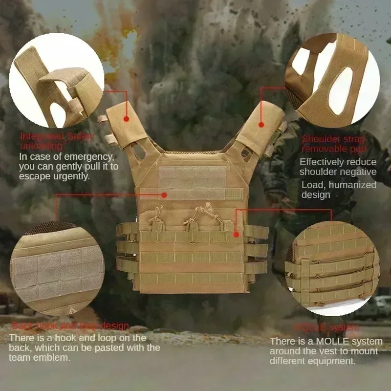 Armadura corporal de tela Oxford 600D, chaleco de caza Molle ajustable, chaleco portador de placa Molle ligero, equipo de jungla repelente al agua