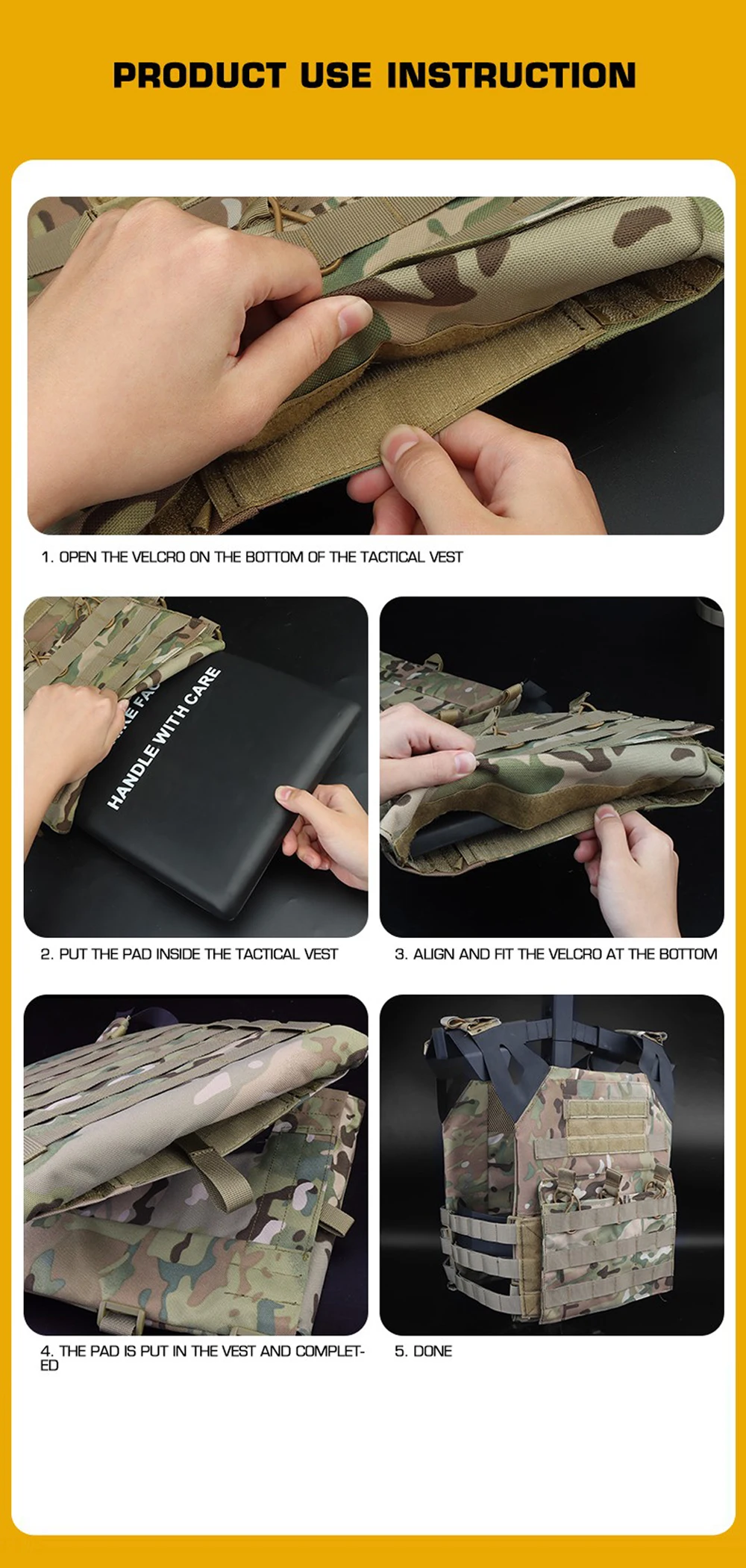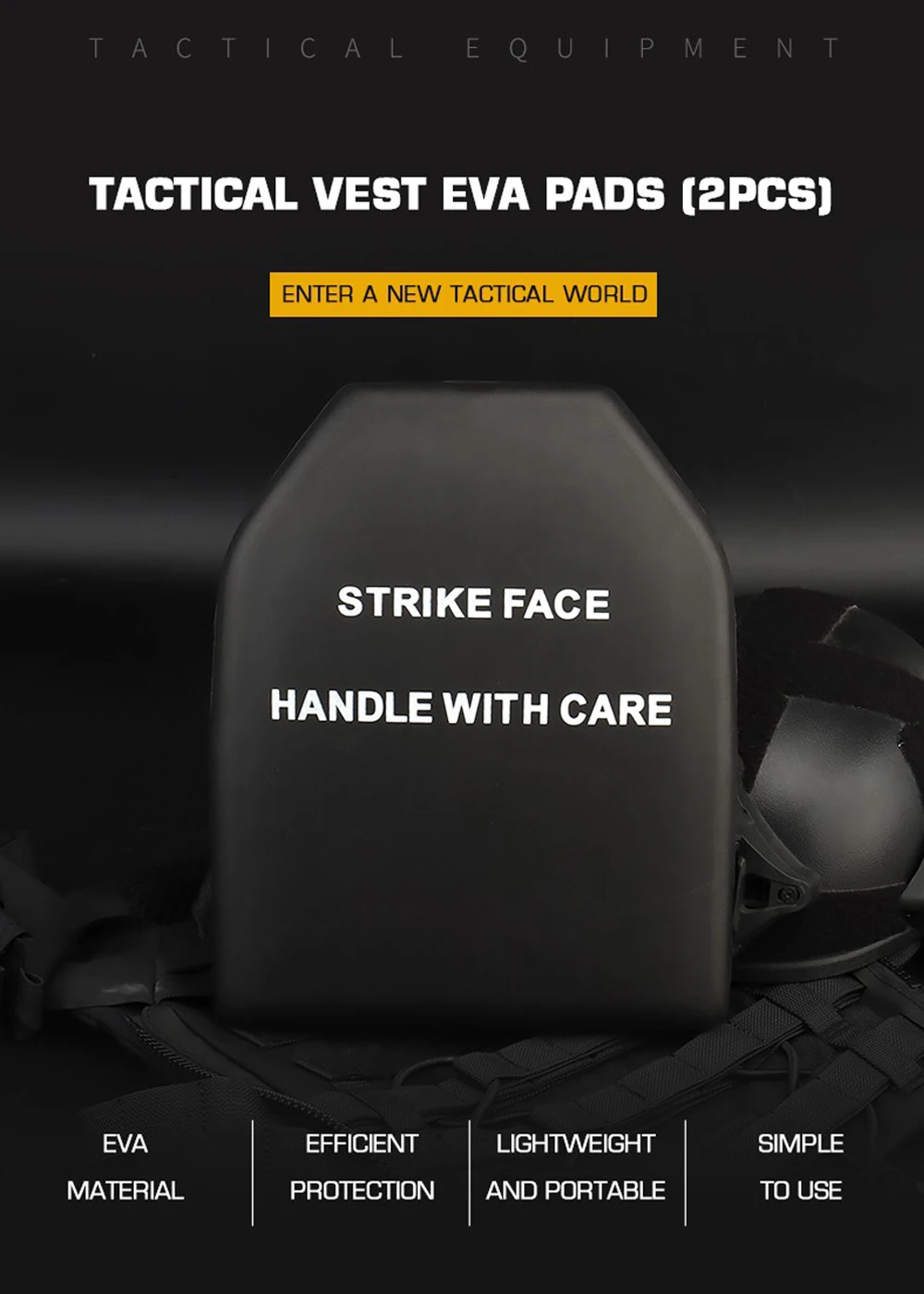 Nombre del producto: chaleco táctico almohadilla protectora EVA 2 uds. Número de artículo.:VE-ACC-06/07 Tamaño del producto: 24*30*2 cm/15*1*15 cm Peso neto del producto: 0,23 KG/0,056 KG Color del producto: NEGRO Material principal: EVA Escena aplicable: militar, caza, deportes al aire libre y otros deportes tácticos de airsoft, etc.