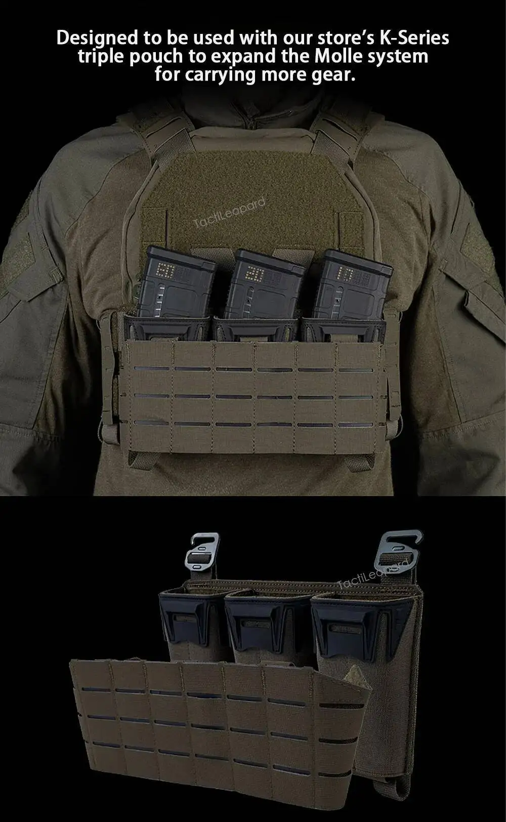 Diseñado para usarse con la bolsa triple serie K de nuestra tienda para ampliar el sistema Molle y transportar más equipo.