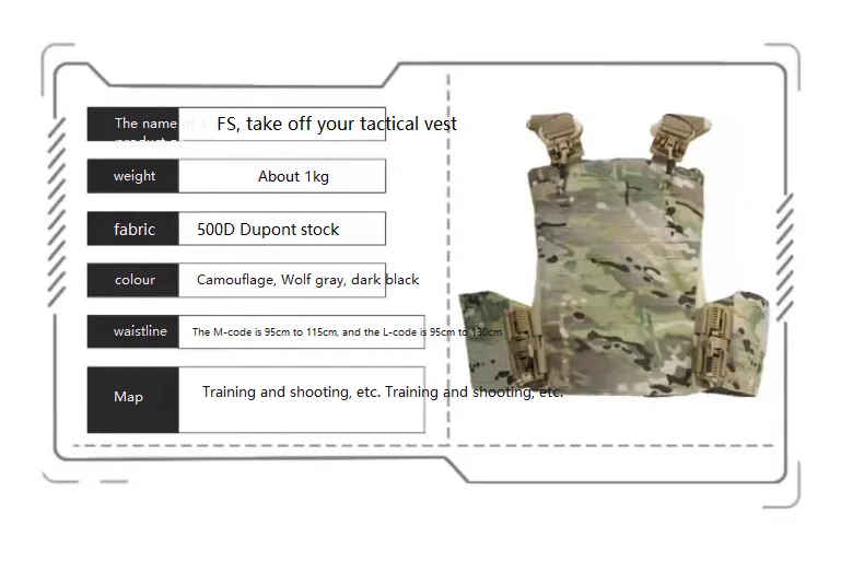 Chaleco táctico ligero desmontable rápido con láser estilo F-S para exteriores, traje de combate multifuncional CS para entrenamiento de campo, chaleco