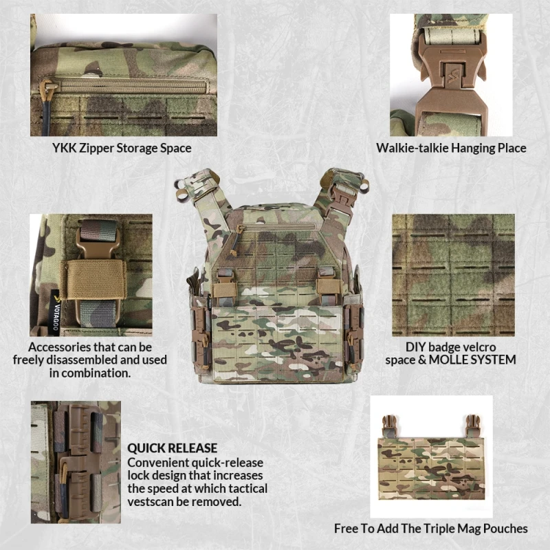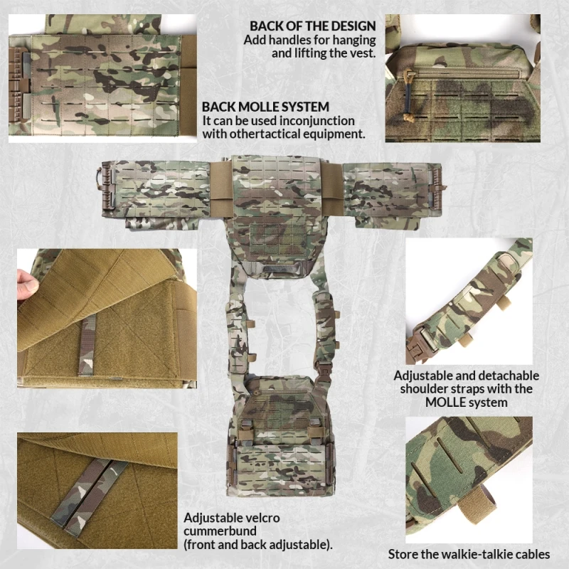 Chaleco táctico ligero para exteriores, chaleco de rotura rápida con corte láser Molle, equipo de entrenamiento de extensión Modular LSR