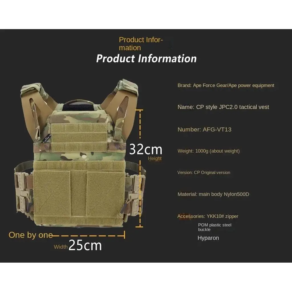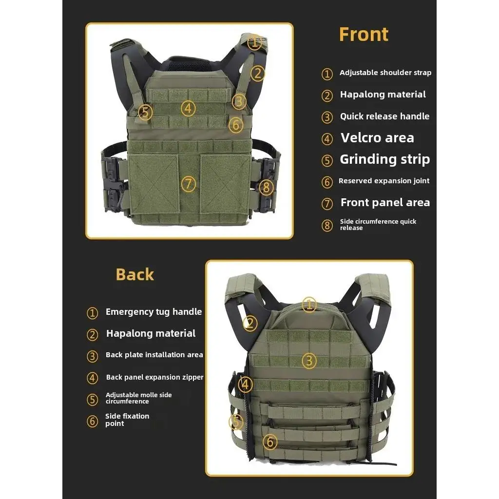Chaleco táctico ligero JPC2.0, vigas laterales de liberación rápida, mate 500D