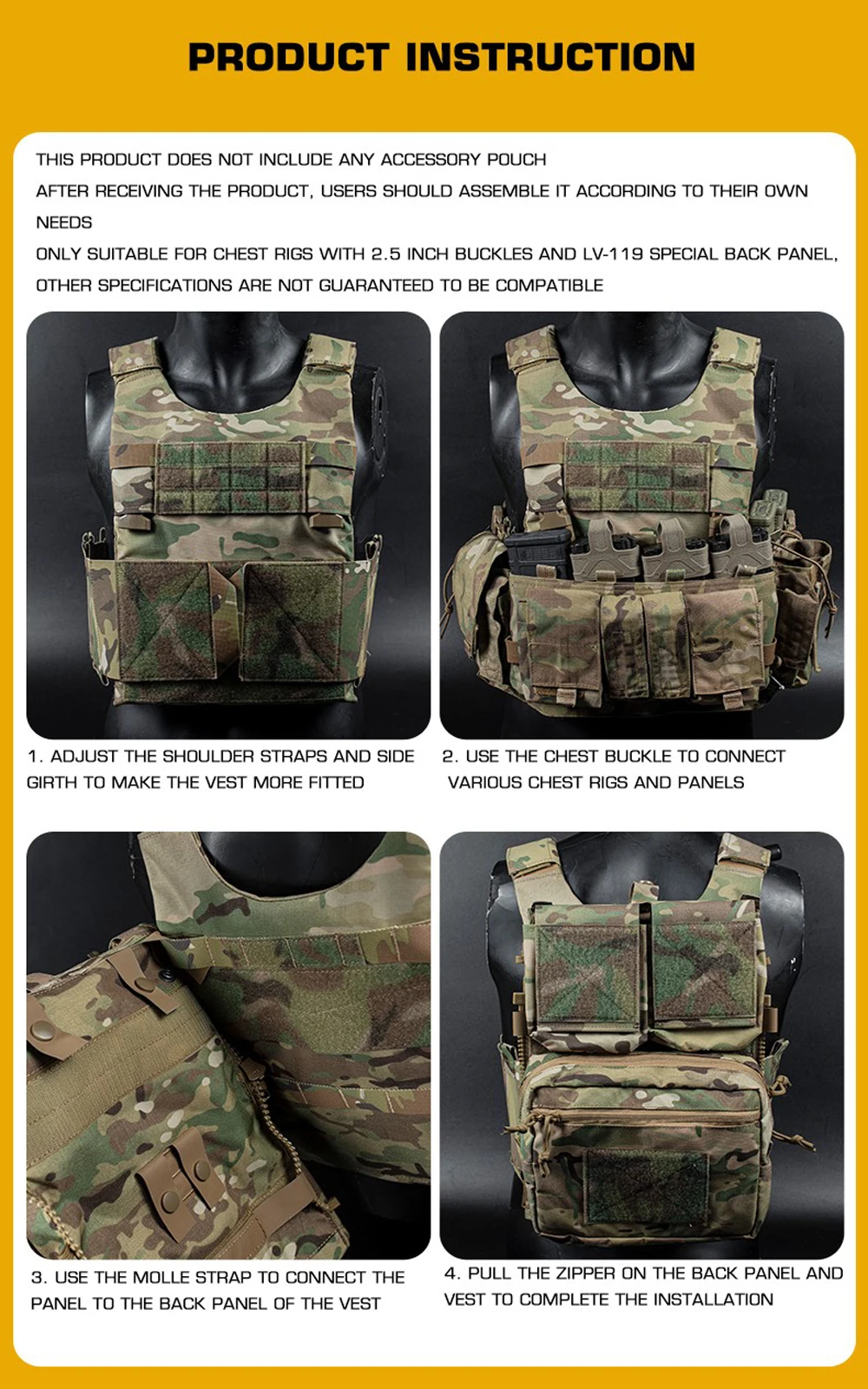 LV-119 Chaleco táctico portador de placa deslizante de baja visibilidad Airsoft juego de guerra militar sistema de adaptación ligero chaleco de asalto Slickster