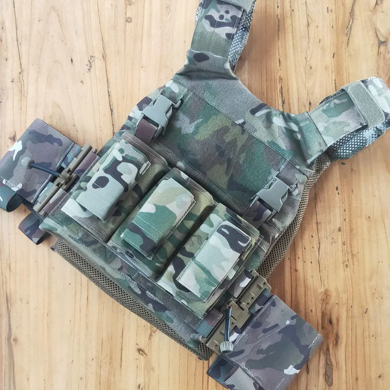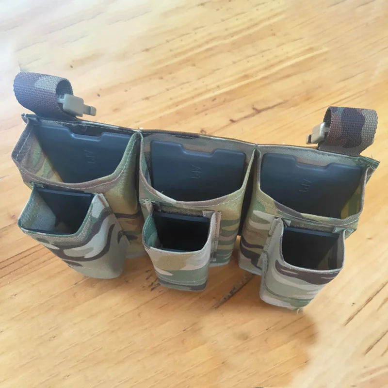 Color:BK/CB/RG/WG/MCBolsa frontal compatible con 9mm; bolsa trasera compatible con 5,56/7,62/AK47