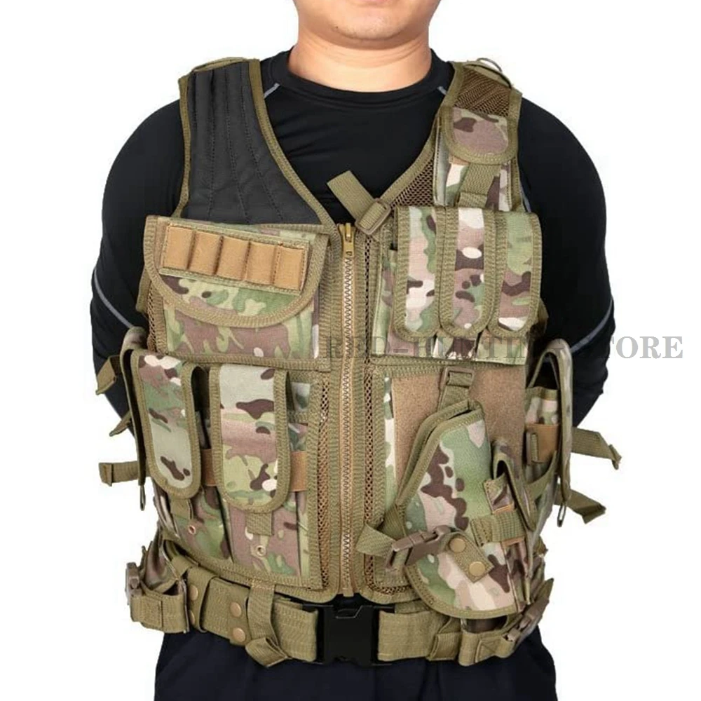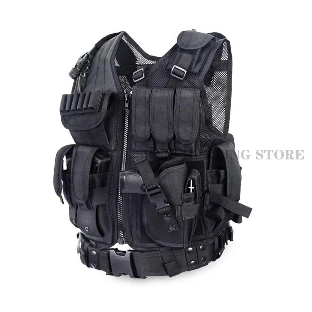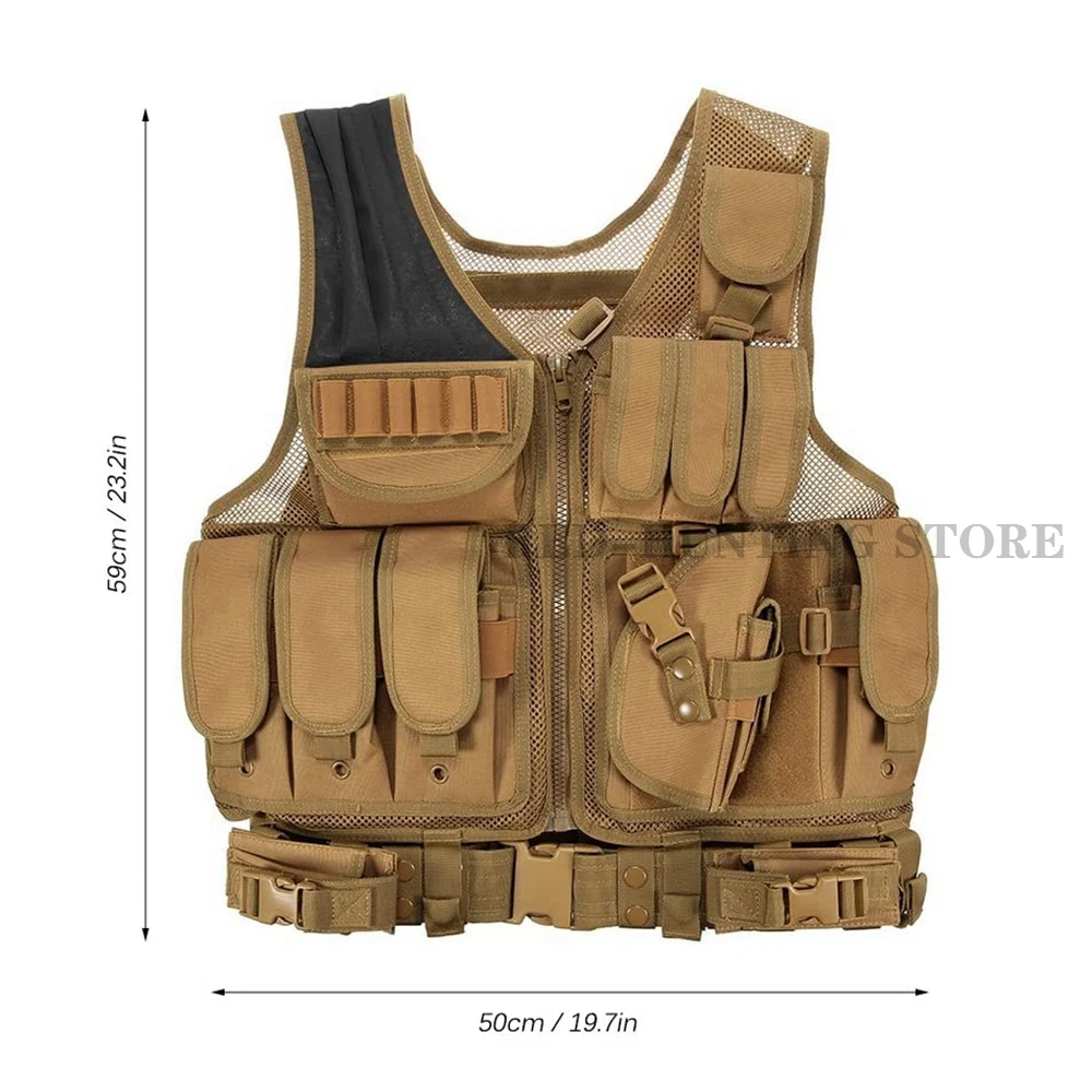 Numerosos bolsillos: el chaleco táctico viene con muchos bolsillos útiles con cremalleras o hebillas, proporciona un almacenamiento grande y seguro.