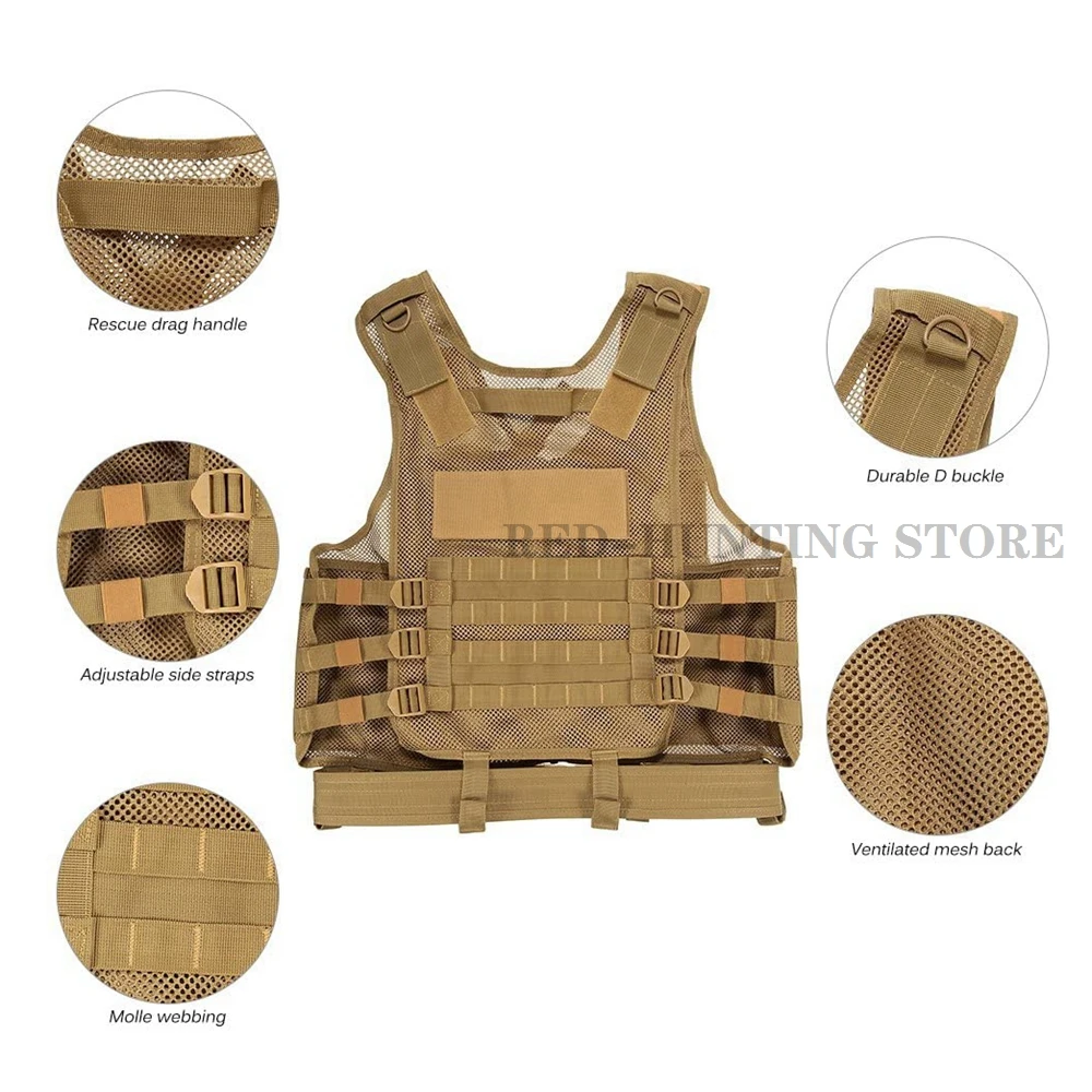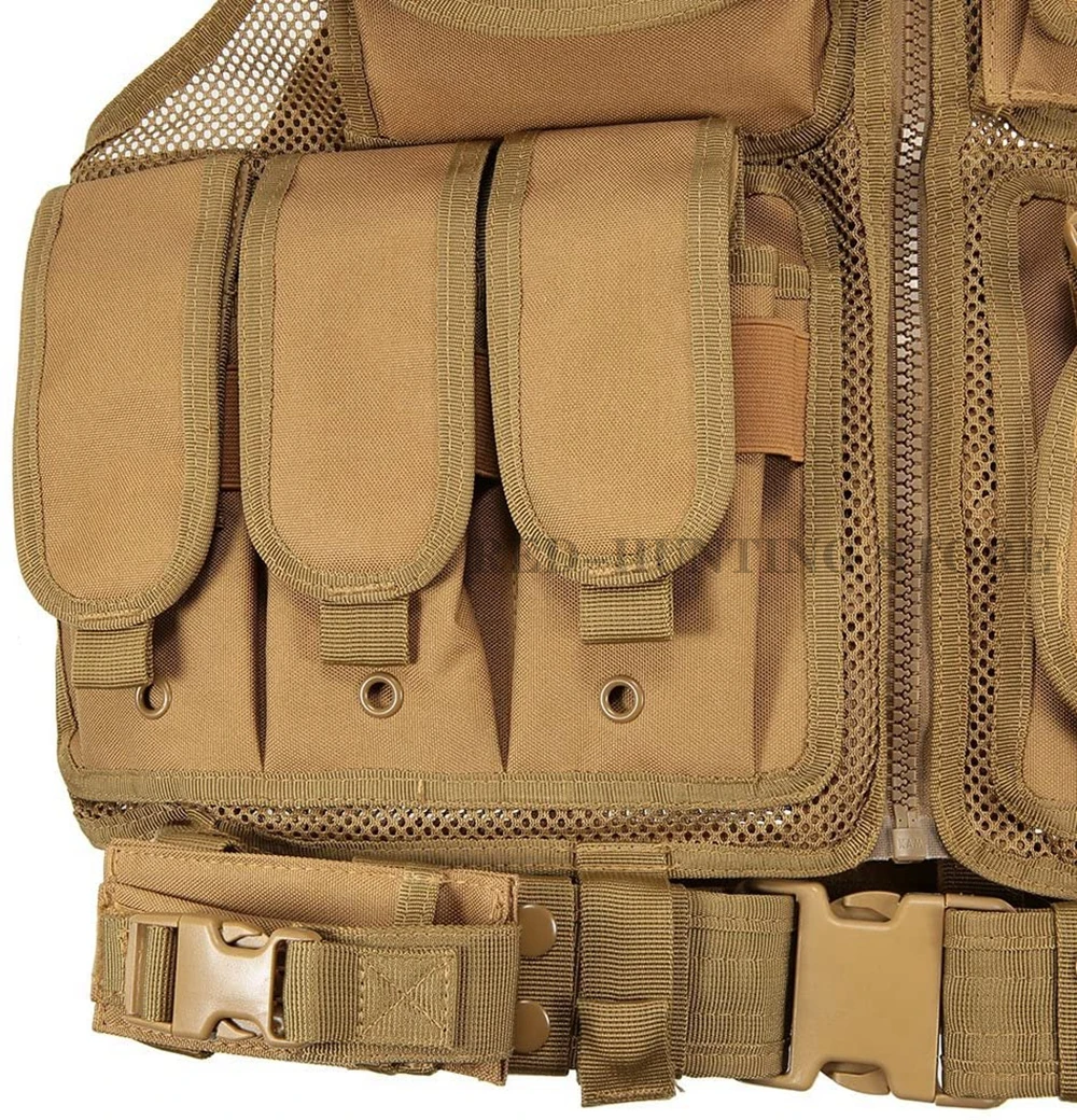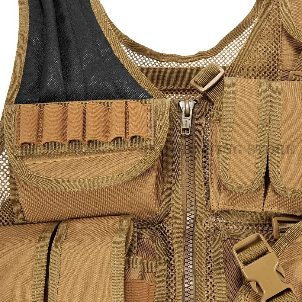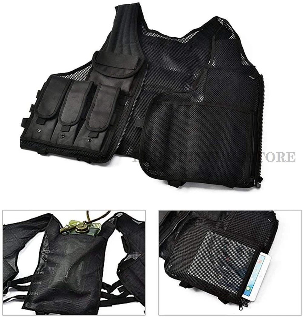 El chaleco táctico está montado en material de malla de nailon resistente, más ventilado
