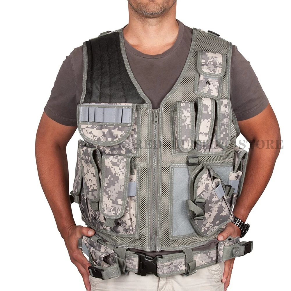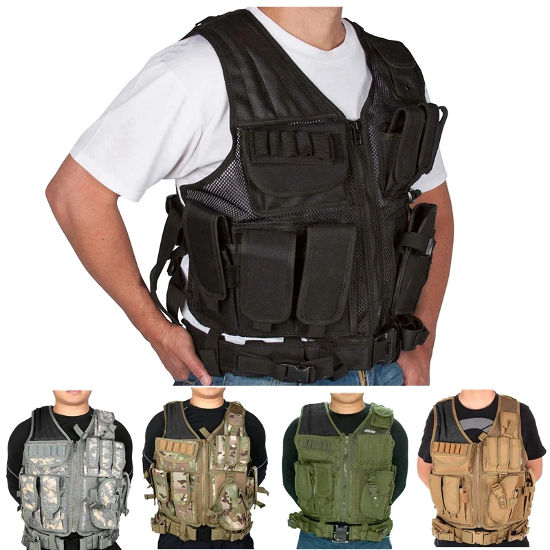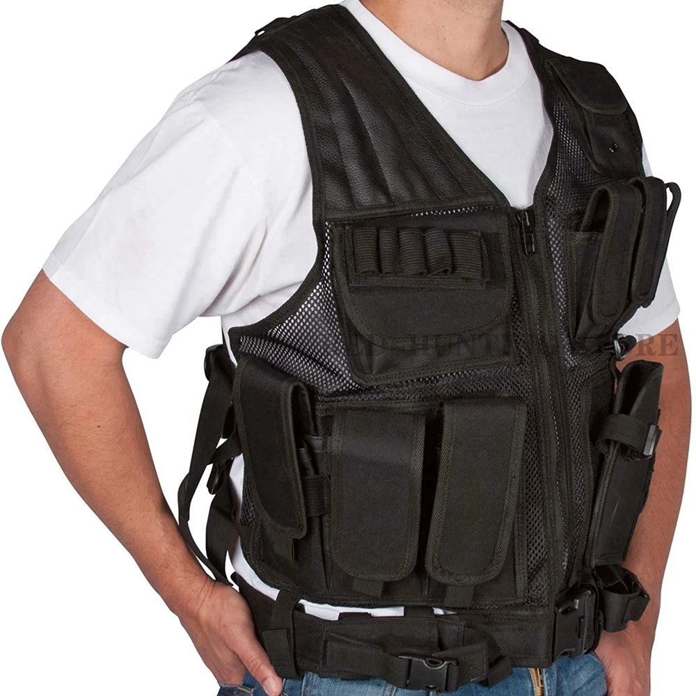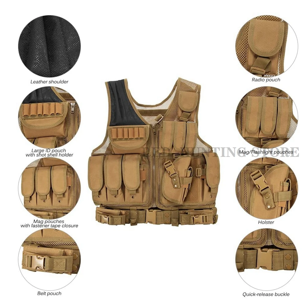 El chaleco táctico está montado en material de malla de nailon resistente, más ventilado