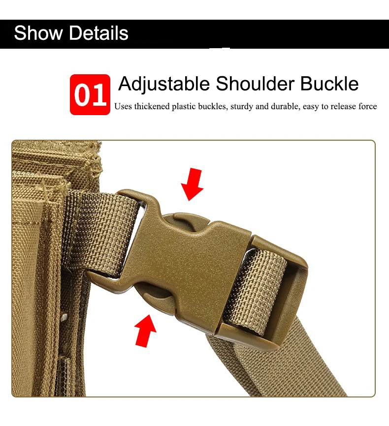 Confeccionado con tela de nailon de alta calidad, este chaleco es duradero pero liviano, lo que garantiza que se mantenga ágil y al mismo tiempo estará bien preparado. Ya sea que esté en un viaje de senderismo, en una expedición de campamento o practicando entrenamiento táctico, este chaleco será su compañero confiable.