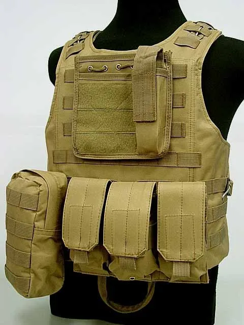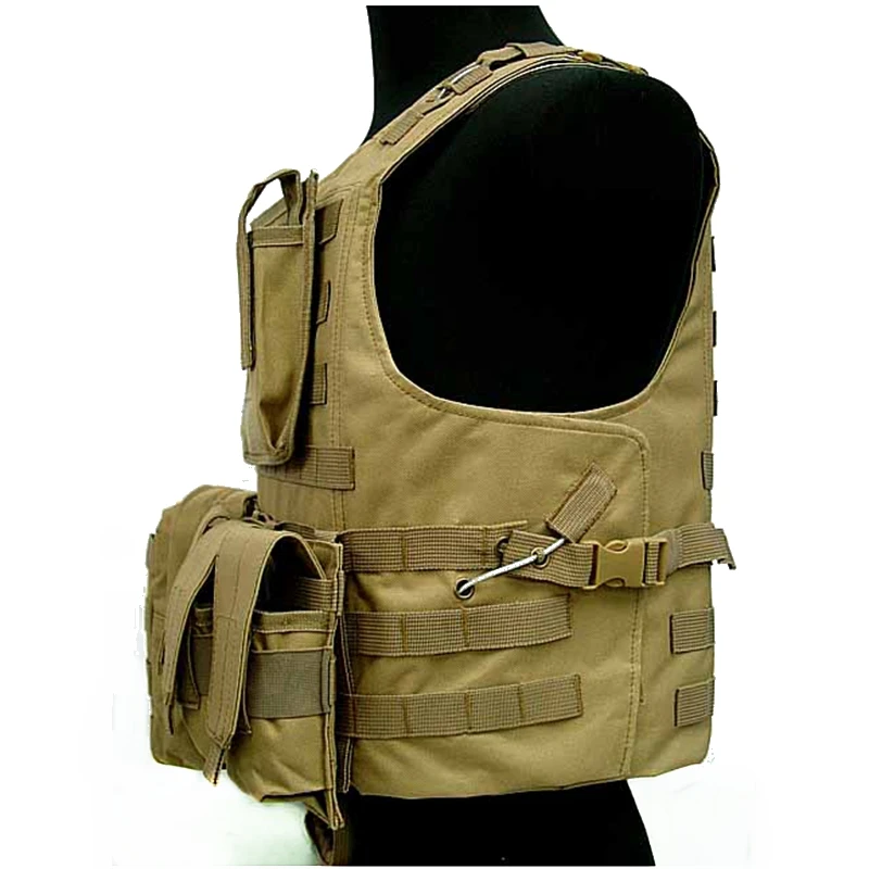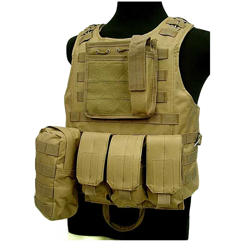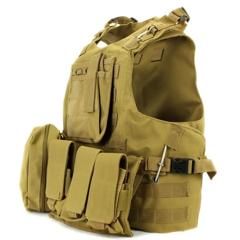 2. Sistemas Molle de combate completamente cargados. 3. Hombro y cintura totalmente ajustables. 4. Tamaño totalmente ajustable con fijación de velcro en dos lados y en el hombro del cuerpo del chaleco. 5. Hebilla de liberación rápida para llevar. 6. El parche de Velcro se puede unir al chaleco. 7. Bolsa y accesorios. Bolsa de supermercado grande y bolsa de pistola 8. El diseño perfecto para los juegos de guerra y otras actividades al aire libre. 9. Color: negro/arena/Verde/CP 10. Peso: aproximadamente 1,5 kg