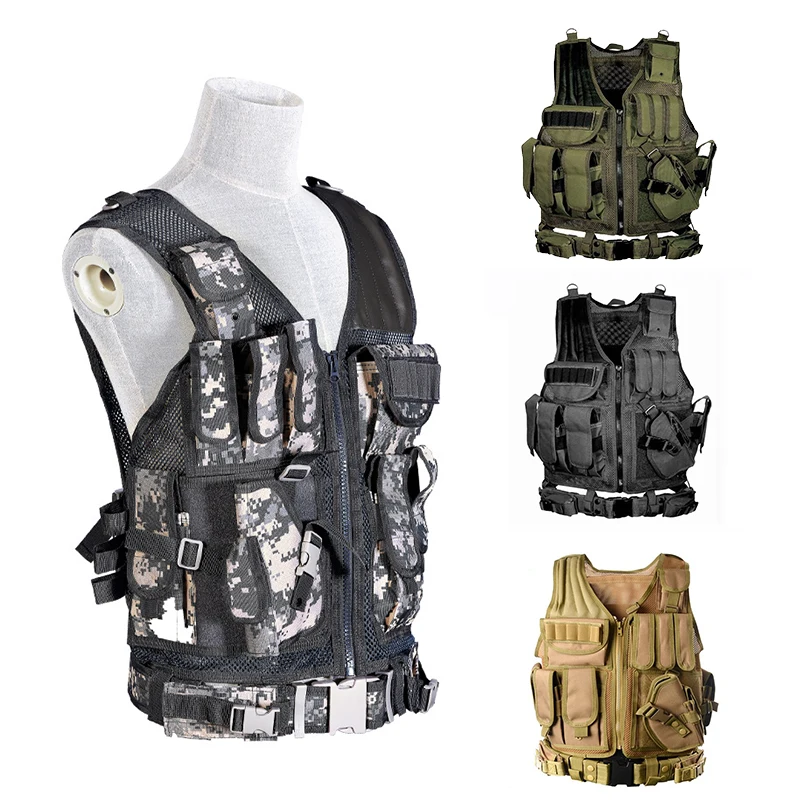 Chaleco táctico del ejército con múltiples bolsillos, chalecos de armadura corporal de combate de la jungla, chaqueta de entrenamiento Airsoft para caza de seguridad, juego CS al aire libre